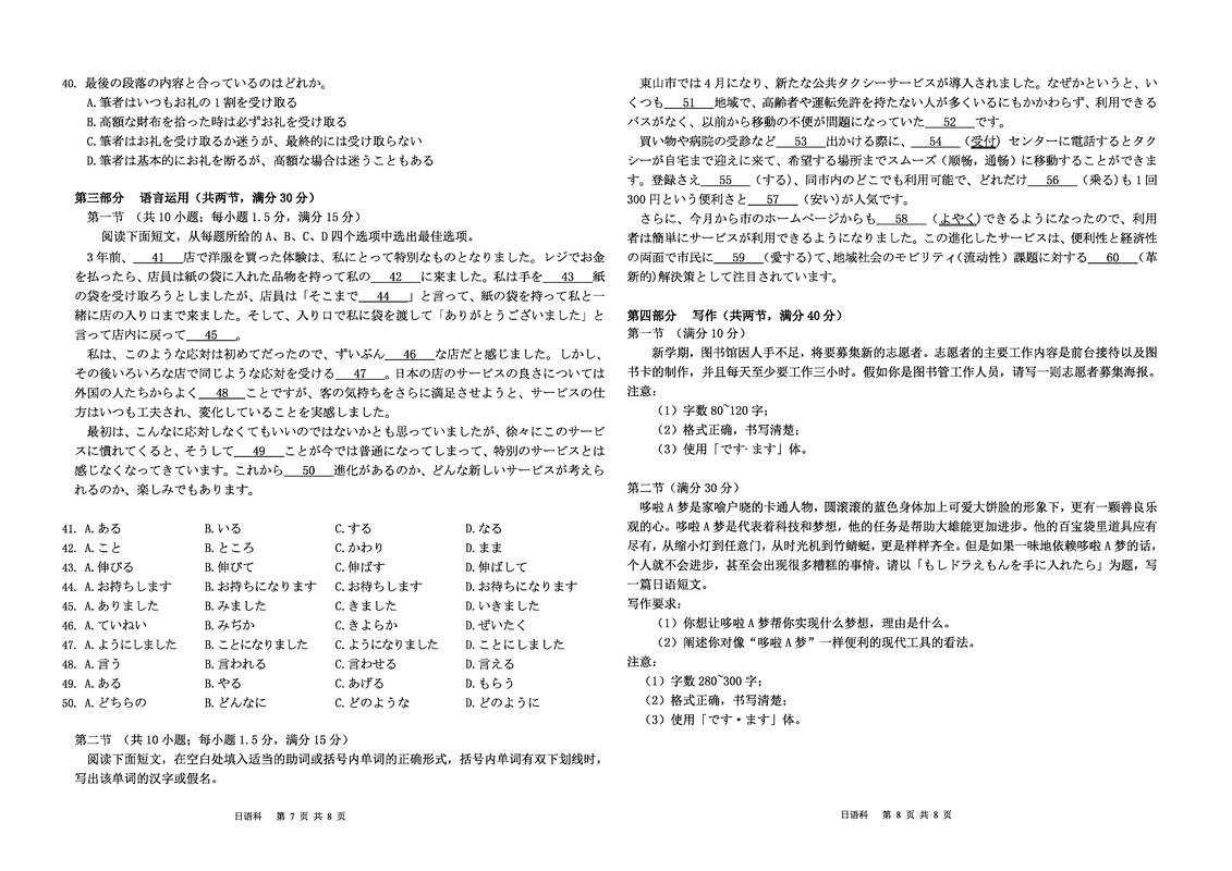 湖南天壹名校联盟2025届高三5月适应性考日语试题及答案