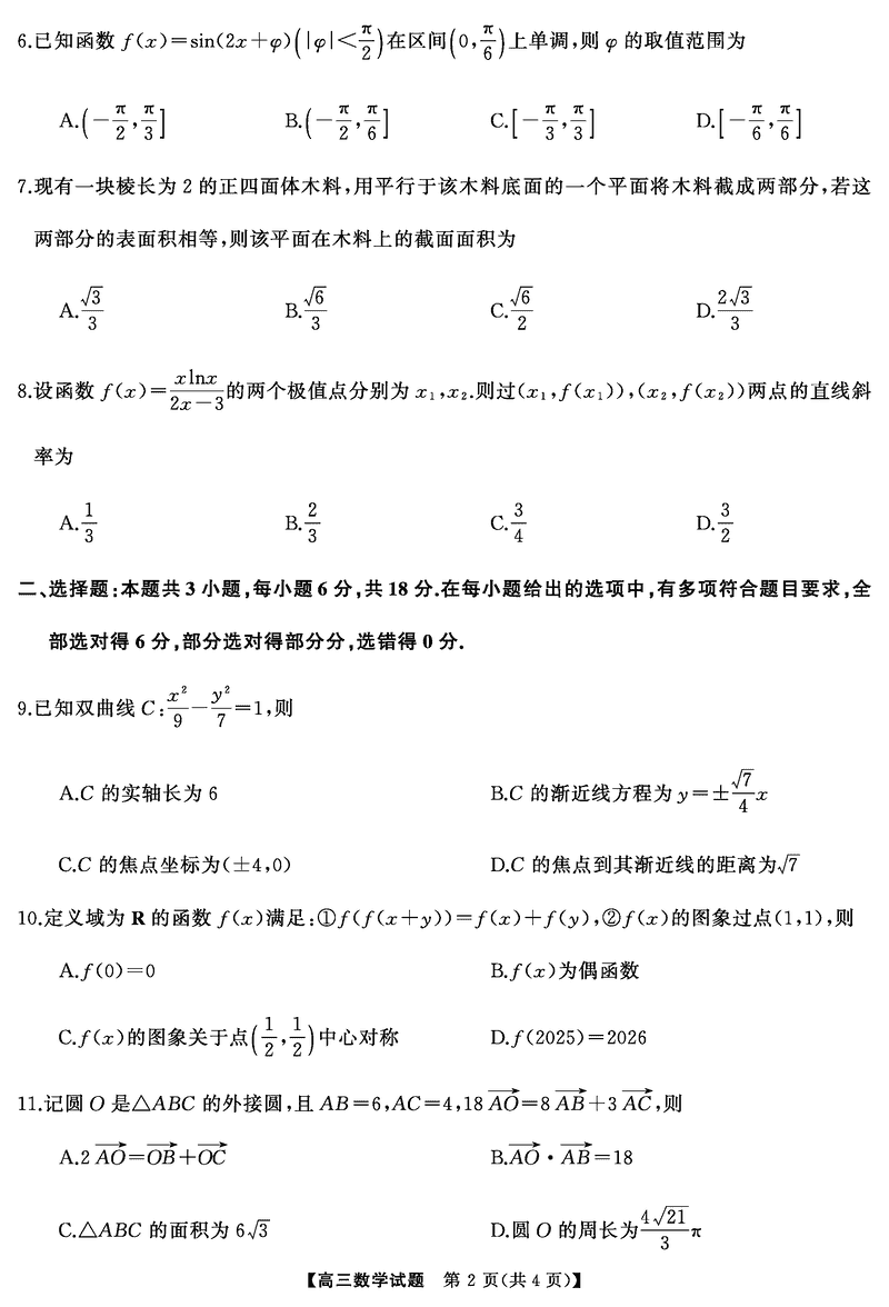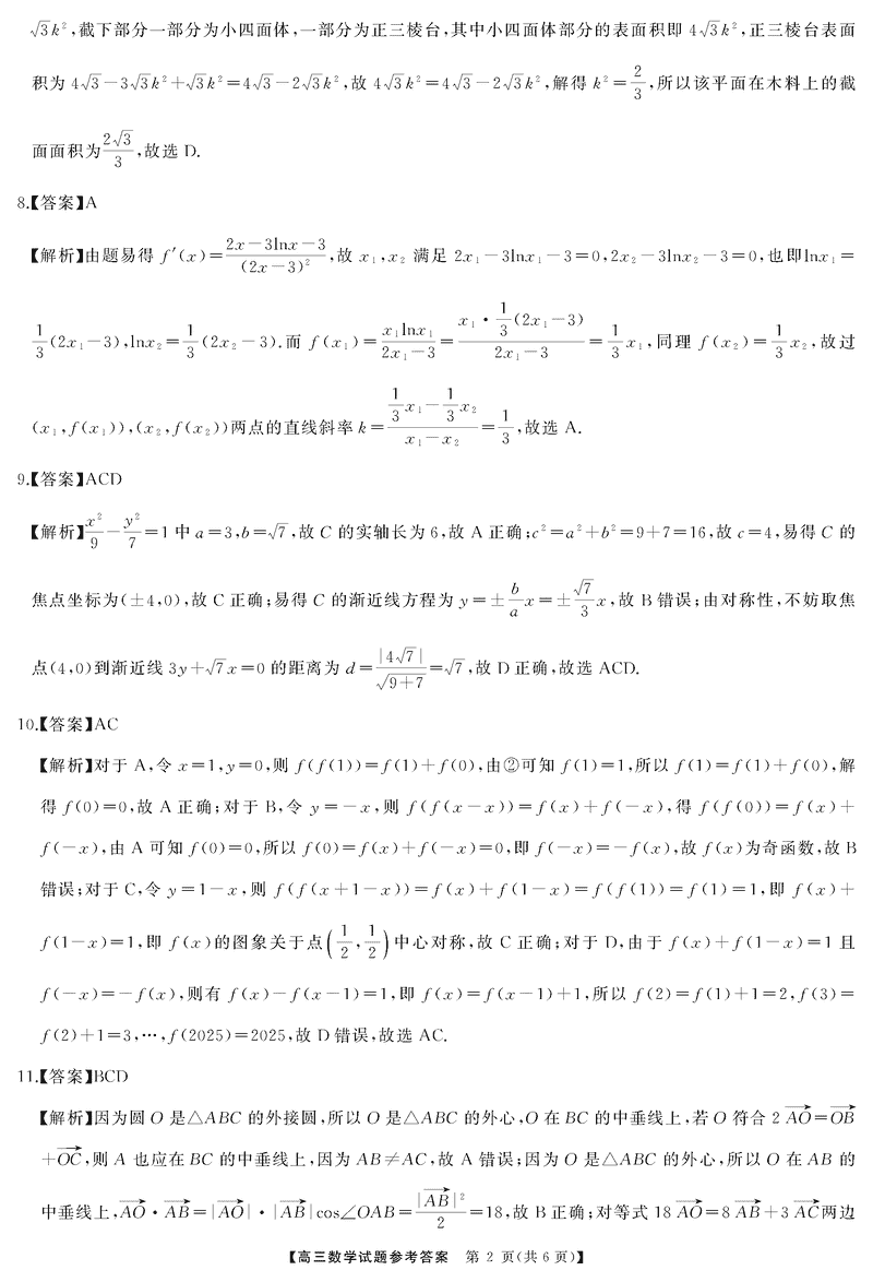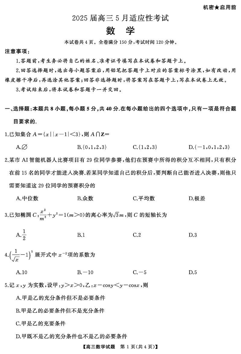 湖南天壹名校联盟2025届高三5月适应性考数学试题及答案