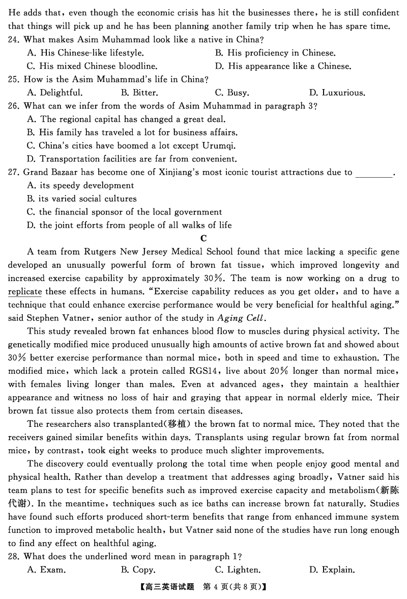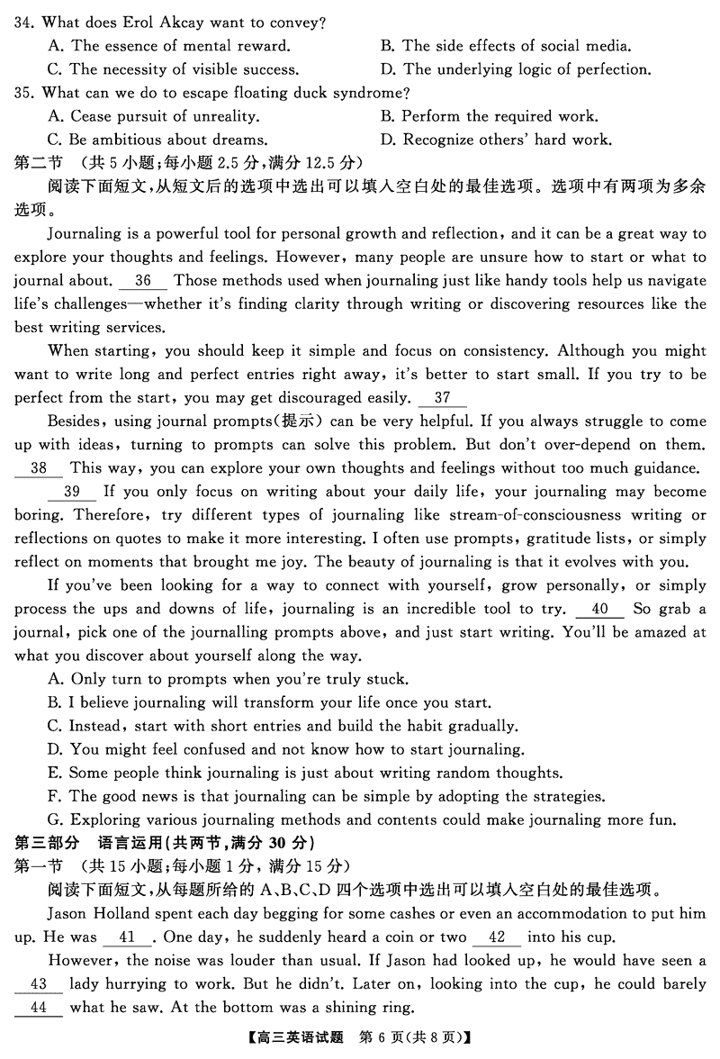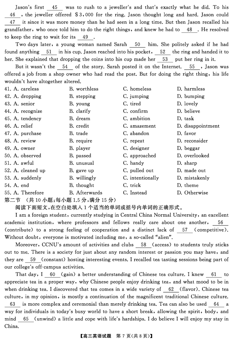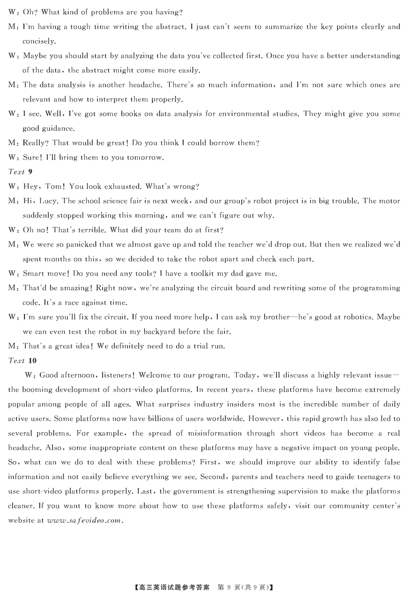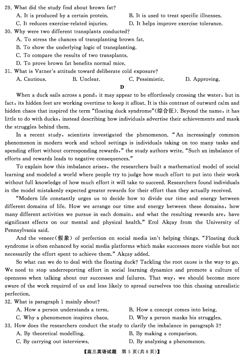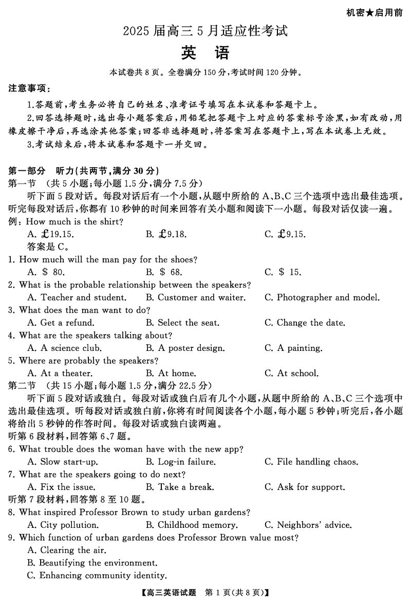 湖南天壹名校联盟2025届高三5月适应性考英语试题及答案