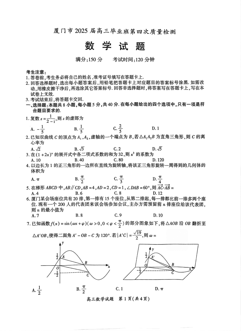 福建厦门2025 届高三第四次质检数学试题及答案 时间:2025-05-12 福建 数学试题 福建厦门2025 届高三第四次质检数学考试已于近日开考,为方便考生考后及时查看考试情况,查漏补缺、弥补不足,本文整理了试题答案解析相关信息! 汇总:福建厦门2025 届高三第四次质量检测试题及答案汇总 数学试题及答案解析