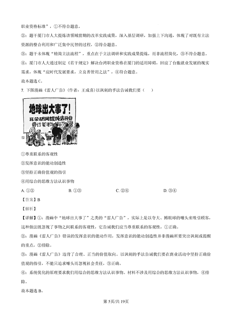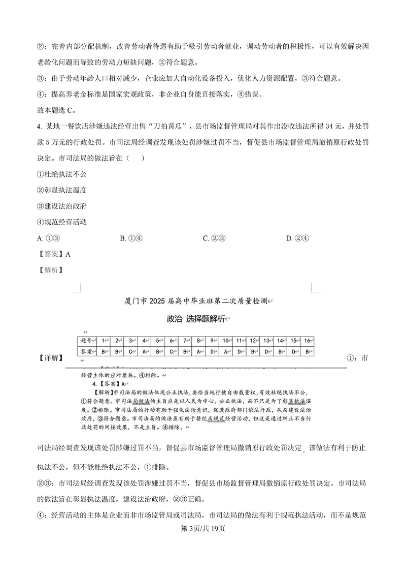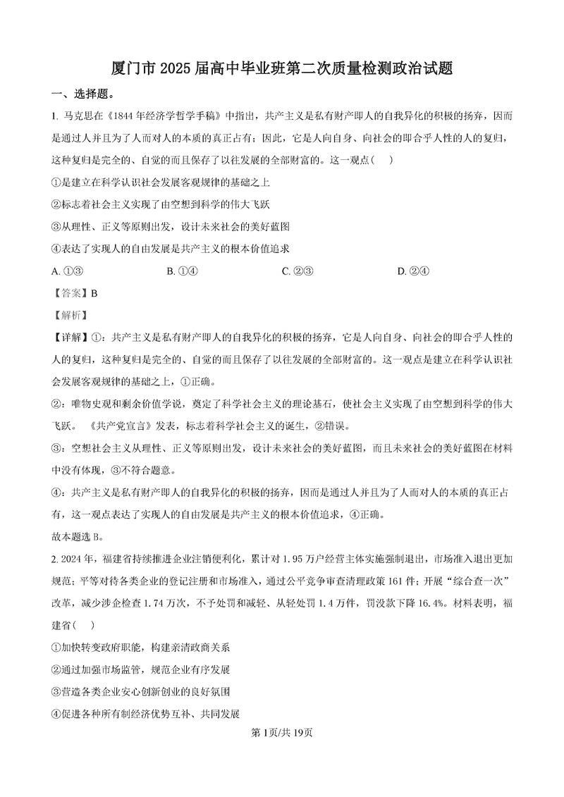 福建厦门2025 届高三第四次质检政治试题及答案 时间:2025-05-12 福建 文综试题 福建厦门2025 届高三第四次质检政治考试已于近日开考,为方便考生考后及时查看考试情况,查漏补缺、弥补不足,本文整理了试题答案解析相关信息! 汇总:福建厦门2025 届高三第四次质量检测试题及答案汇总 政治试题及答案解析