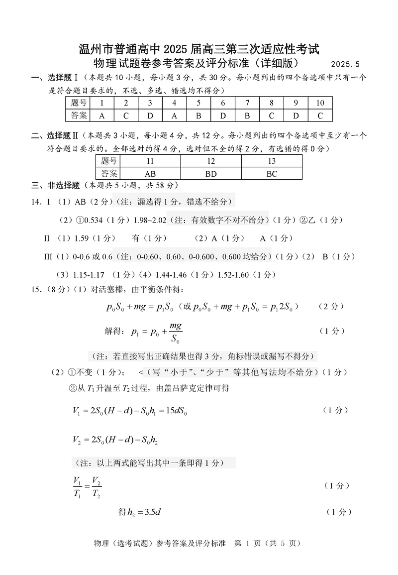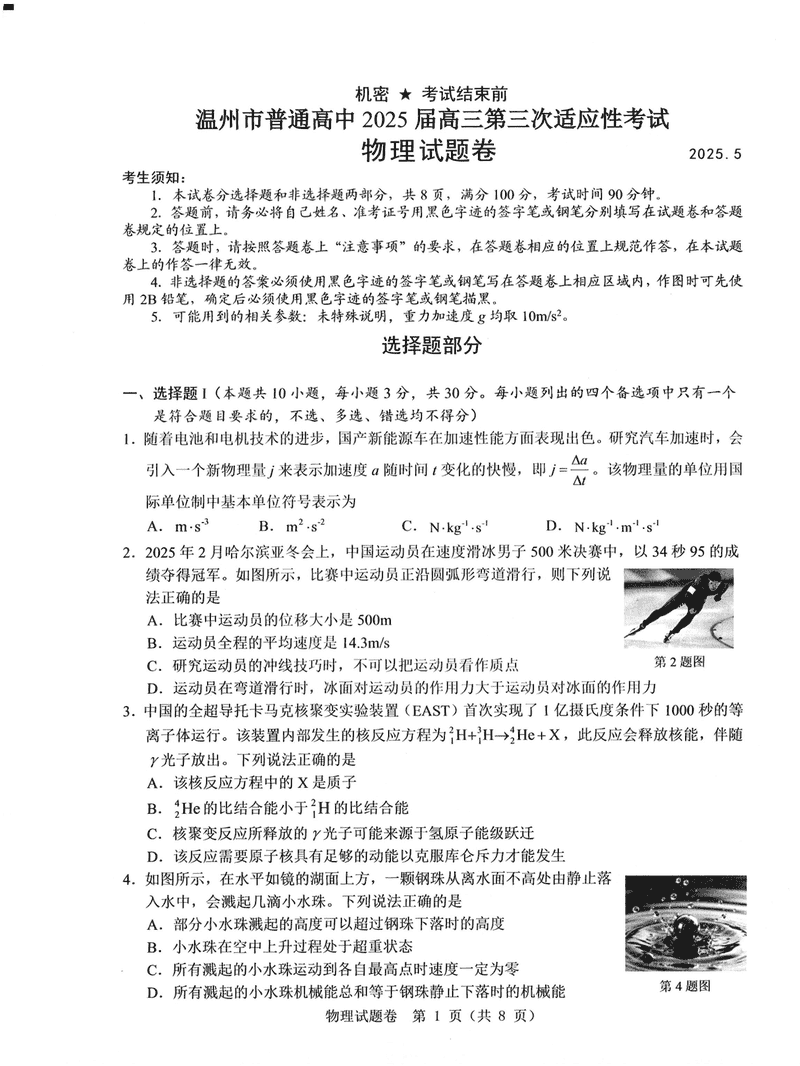 温州三模2025届高三第三次适应性考物理试题及答案 时间:2025-05-12 浙江 理综试题 温州三模2025届高三第三次适应性考物理考试已于近日开考,为方便考生考后及时查看考试情况,查漏补缺、弥补不足,本文整理了试题答案解析相关信息! 汇总:温州三模2025届高三第三次适应性考试试题及答案汇总 物理试题及答案解析