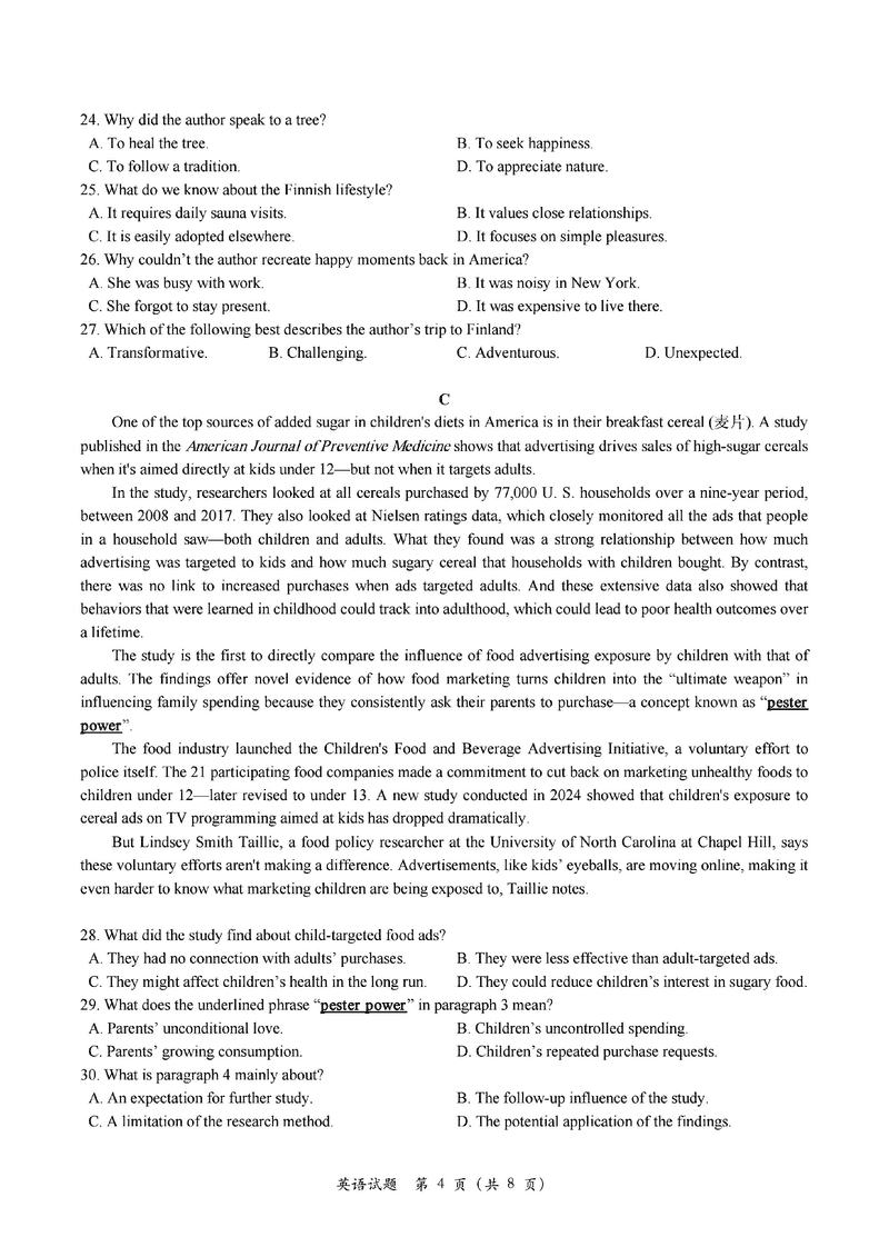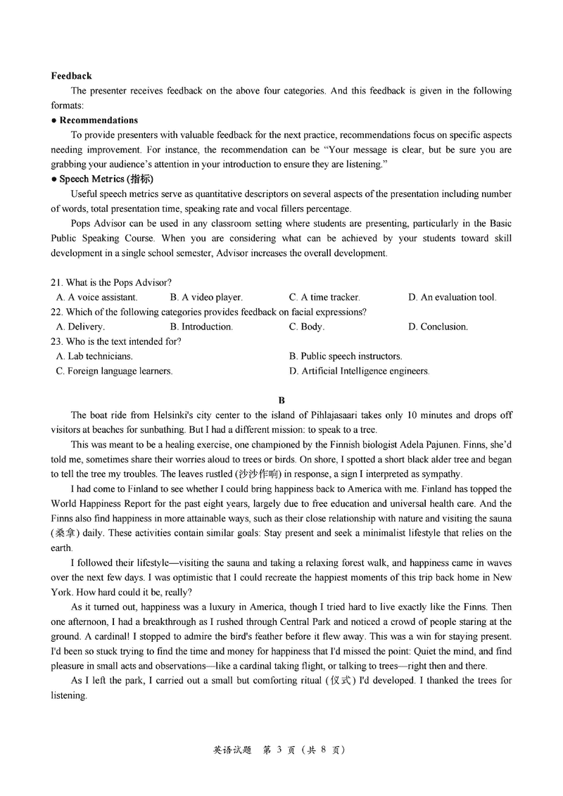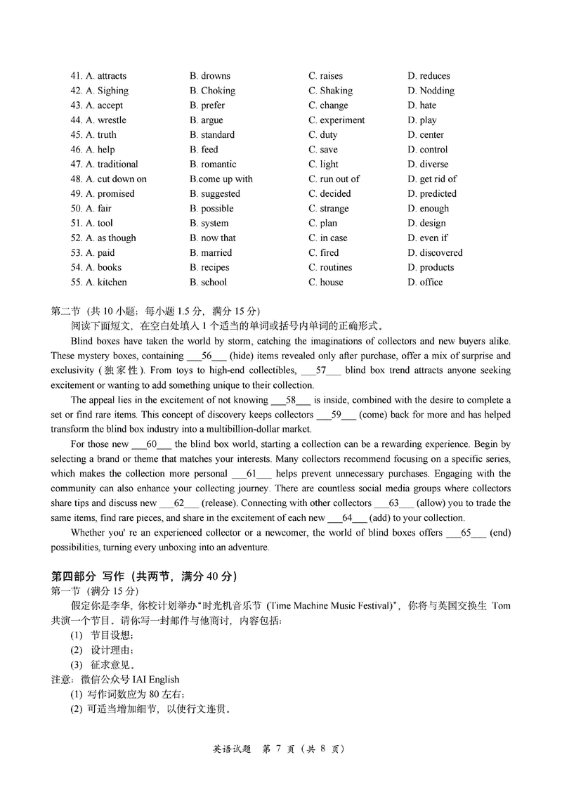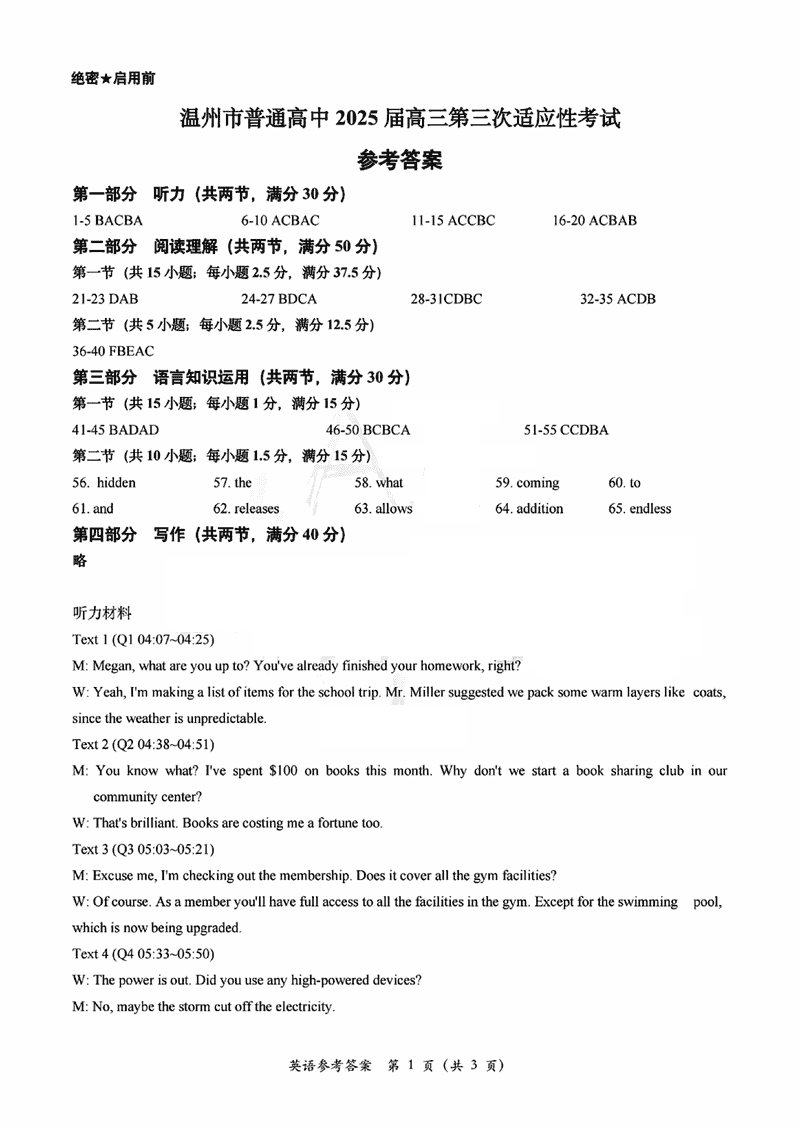 温州三模2025届高三第三次适应性考英语试题及答案 时间:2025-05-12 浙江 英语试题 温州三模2025届高三第三次适应性考英语考试已于近日开考,为方便考生考后及时查看考试情况,查漏补缺、弥补不足,本文整理了试题答案解析相关信息! 汇总:温州三模2025届高三第三次适应性考试试题及答案汇总 英语试题及答案解析