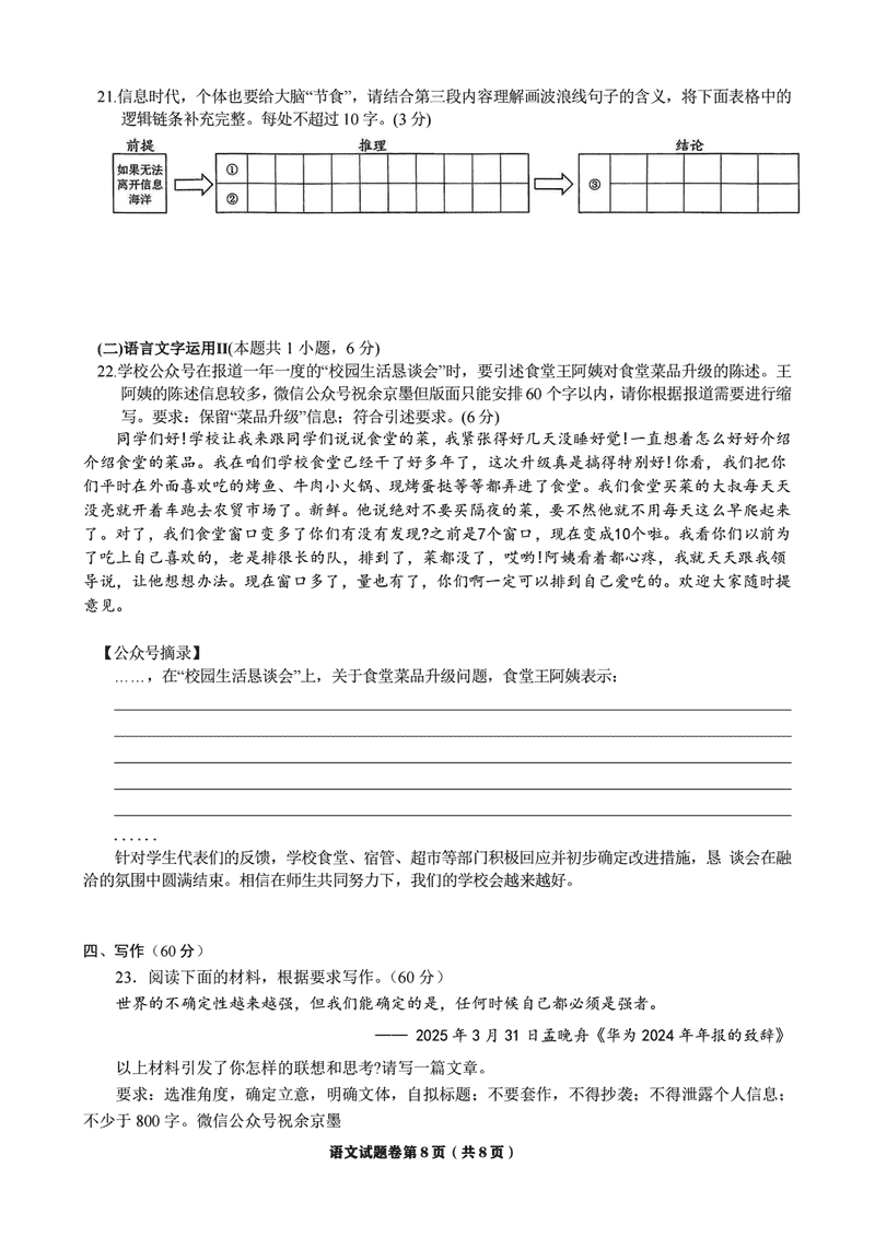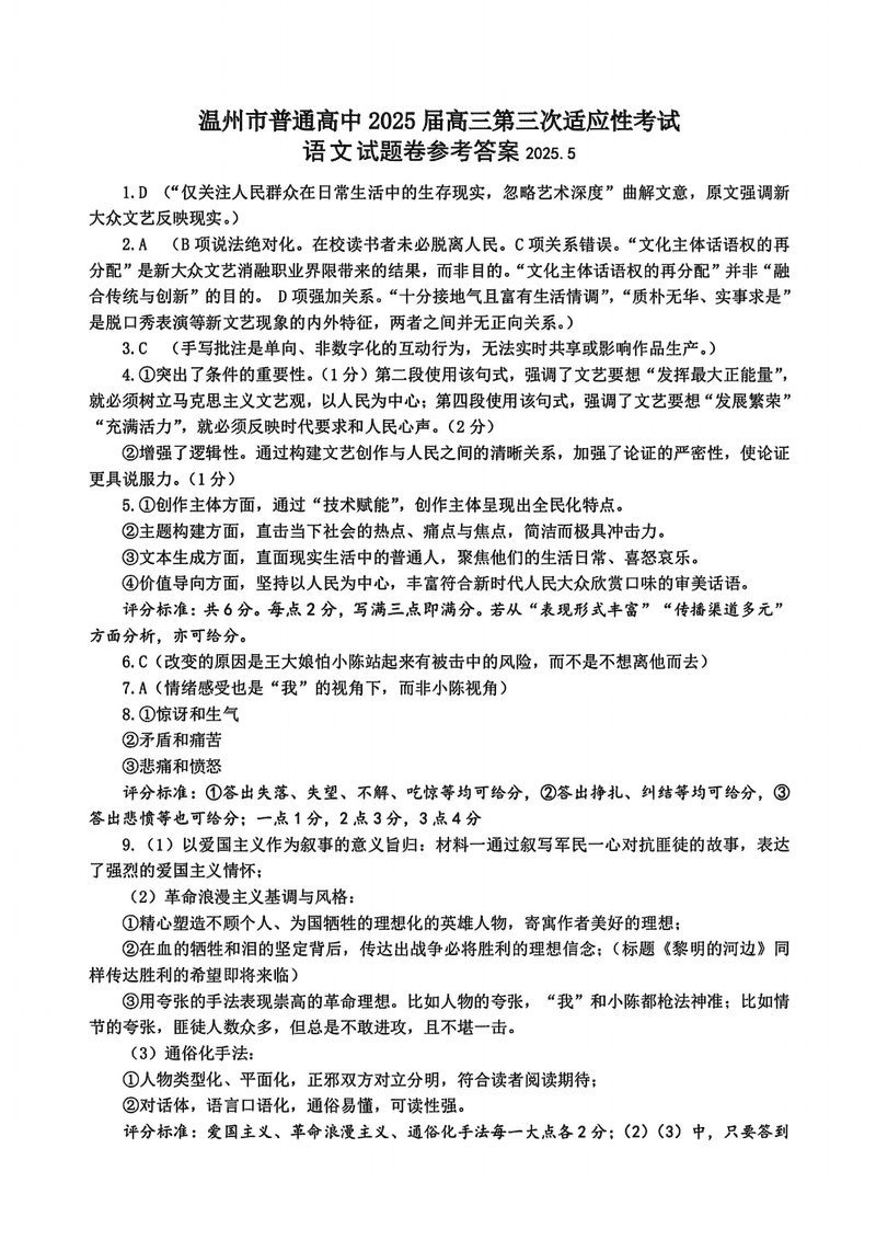 温州三模2025届高三第三次适应性考语文试题及答案 时间:2025-05-12 浙江 语文试题 温州三模2025届高三第三次适应性考语文考试已于近日开考,为方便考生考后及时查看考试情况,查漏补缺、弥补不足,本文整理了试题答案解析相关信息! 汇总:温州三模2025届高三第三次适应性考试试题及答案汇总 语文试题及答案解析