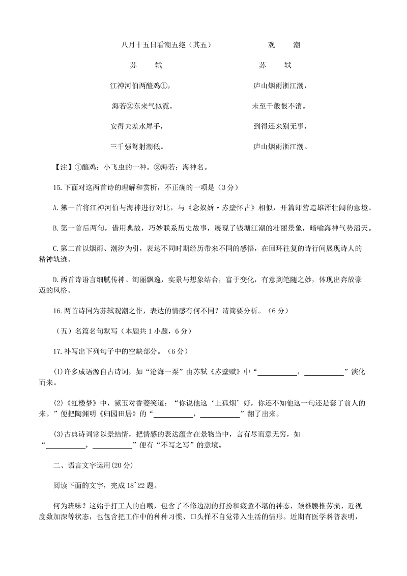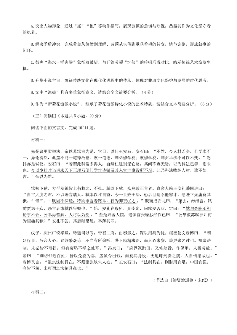 乐山市2025届高三下第三次调查研究语文试题及答案