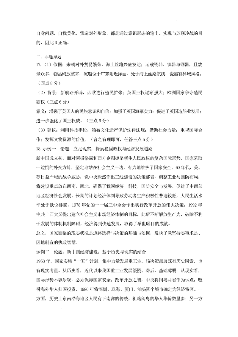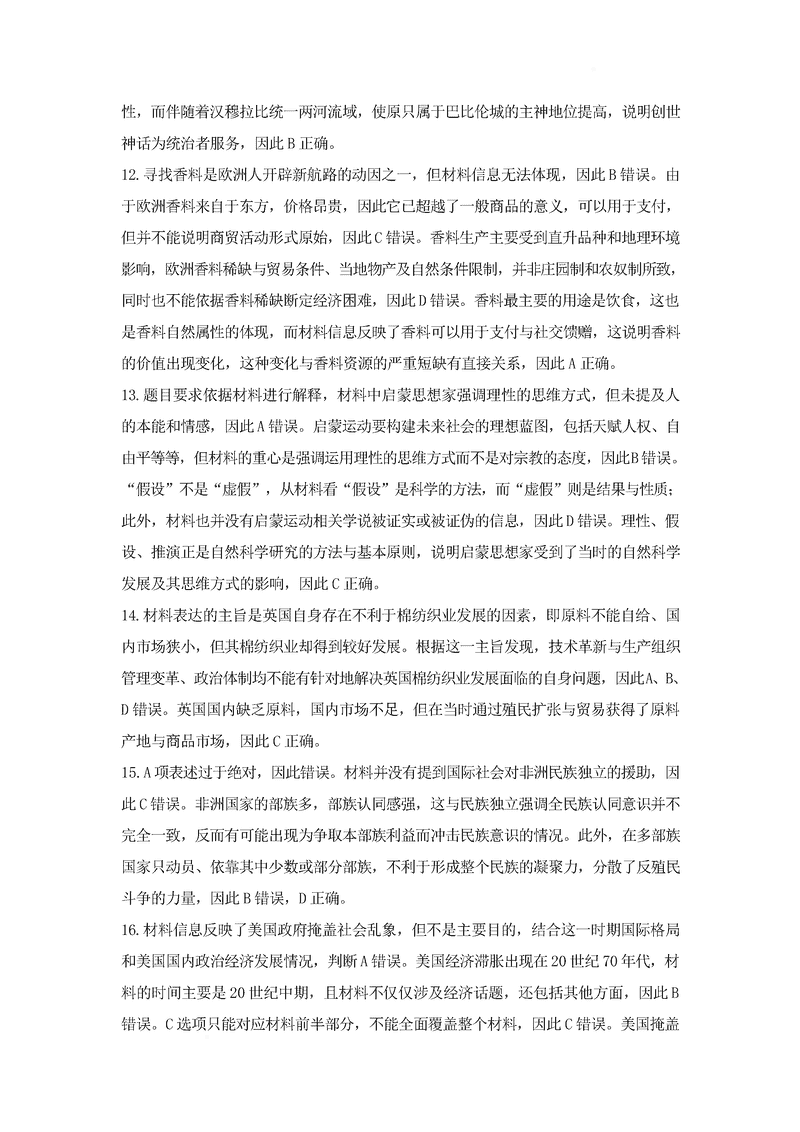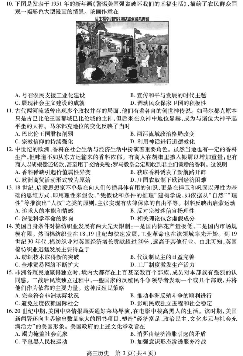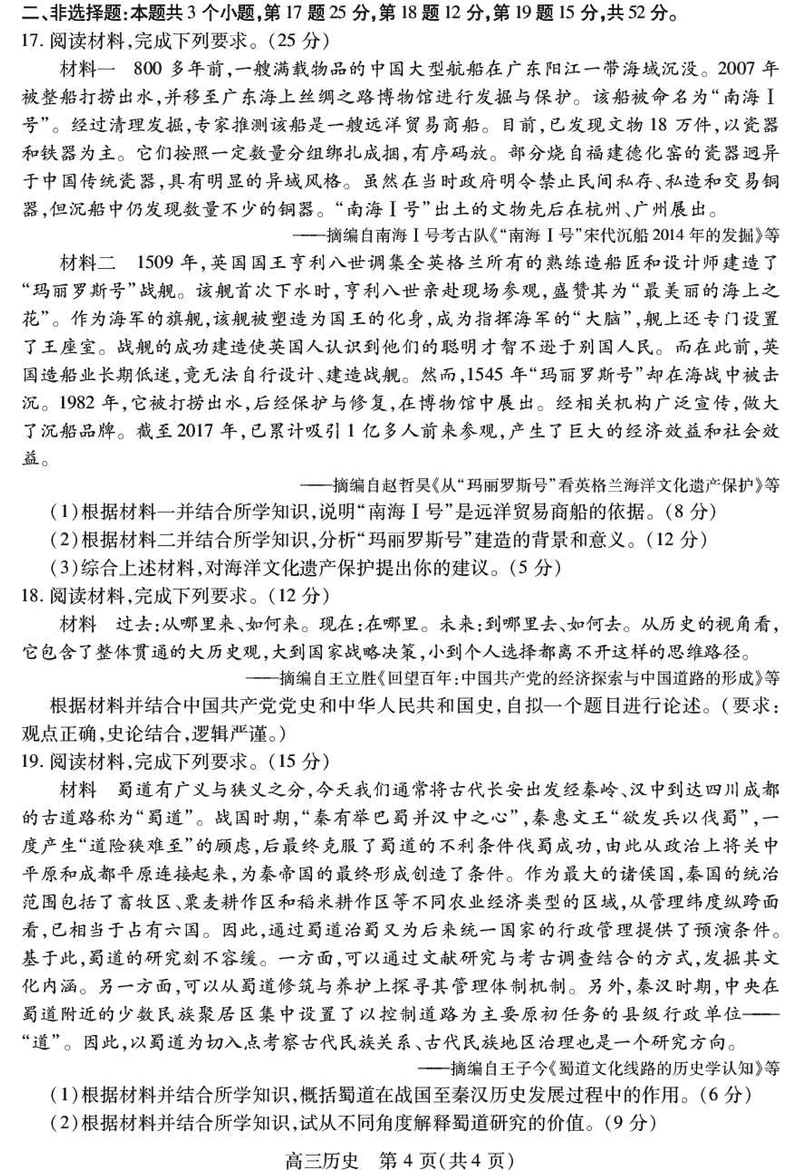 乐山市2025届高三下第三次调查研究历史试题及答案