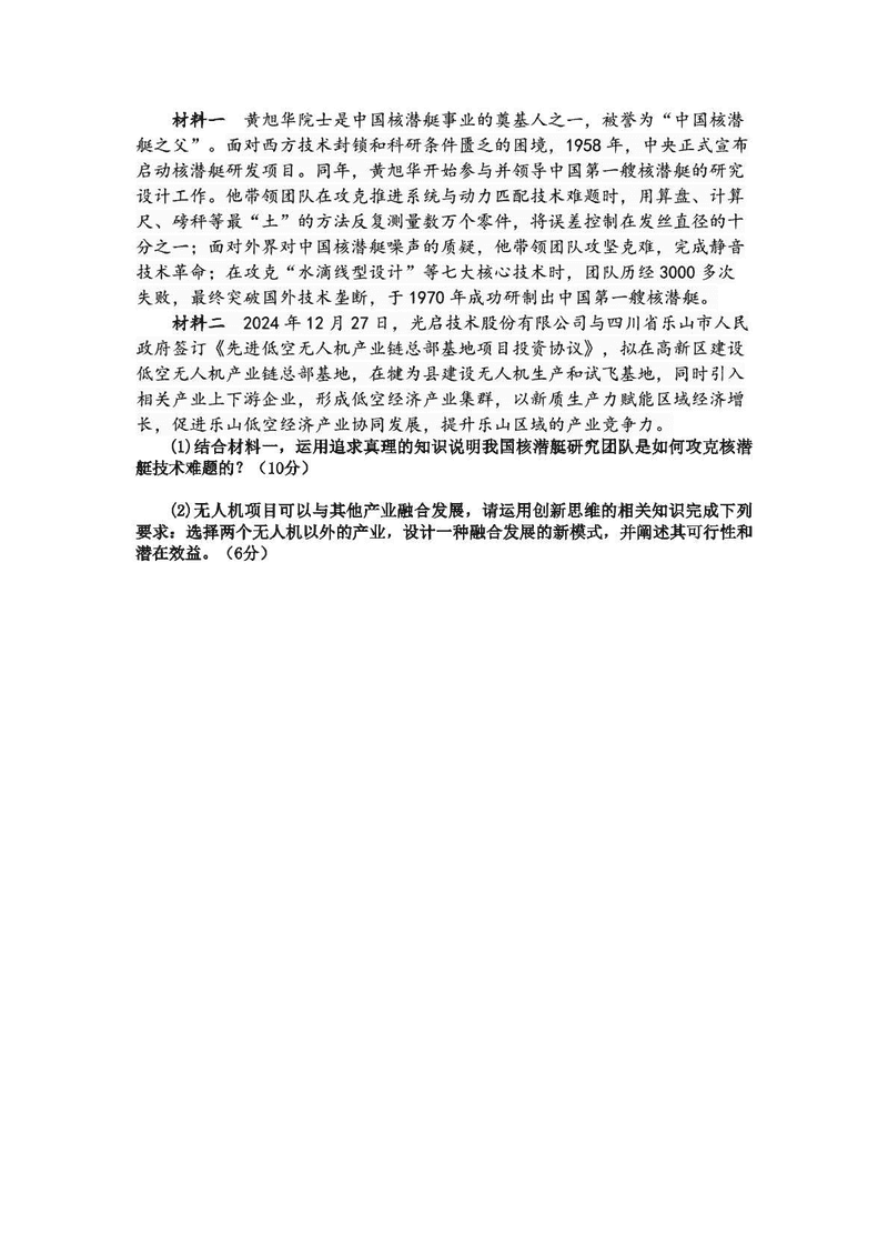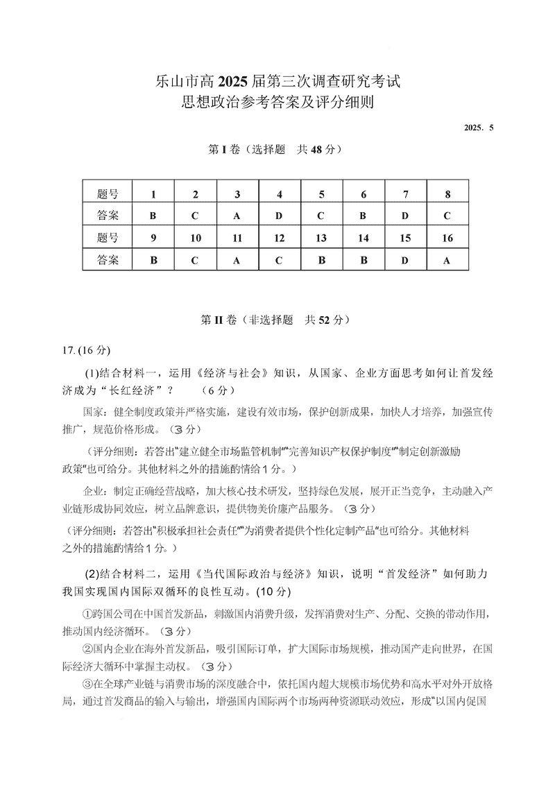 乐山市2025届高三下第三次调查研究政治考试已于近日开考,为方便考生考后及时查看考试情况,查漏补缺、弥补不足,本文整理了试题答案解析相关信息!