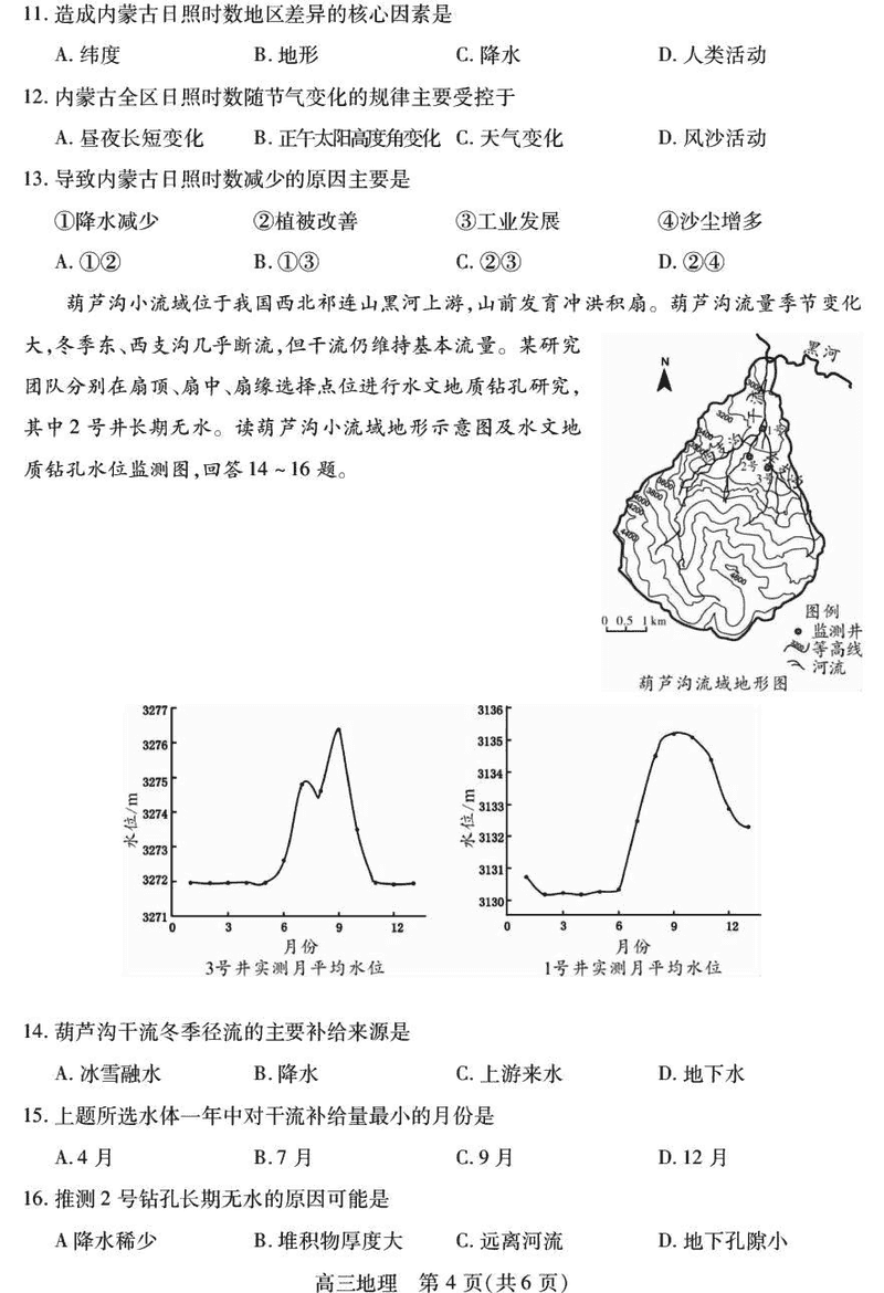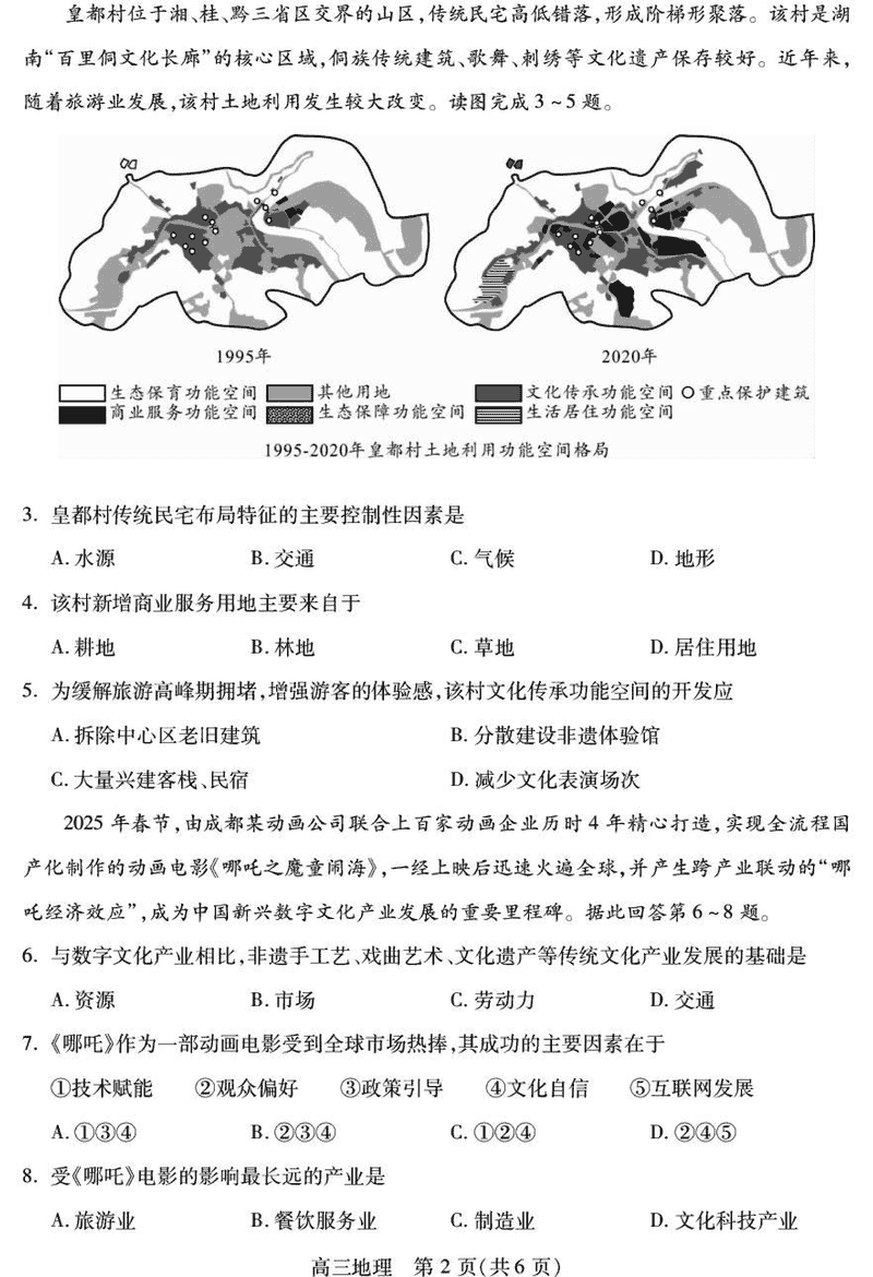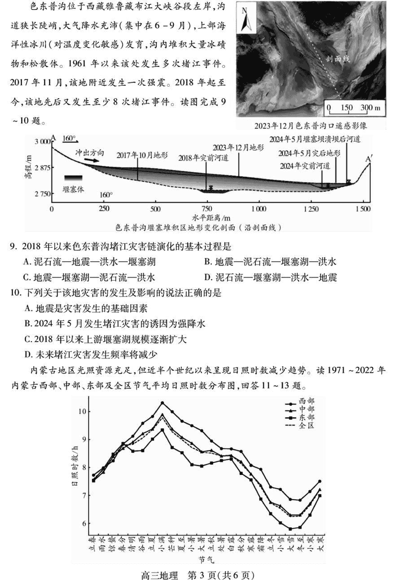 乐山市2025届高三下第三次调查研究地理试题及答案