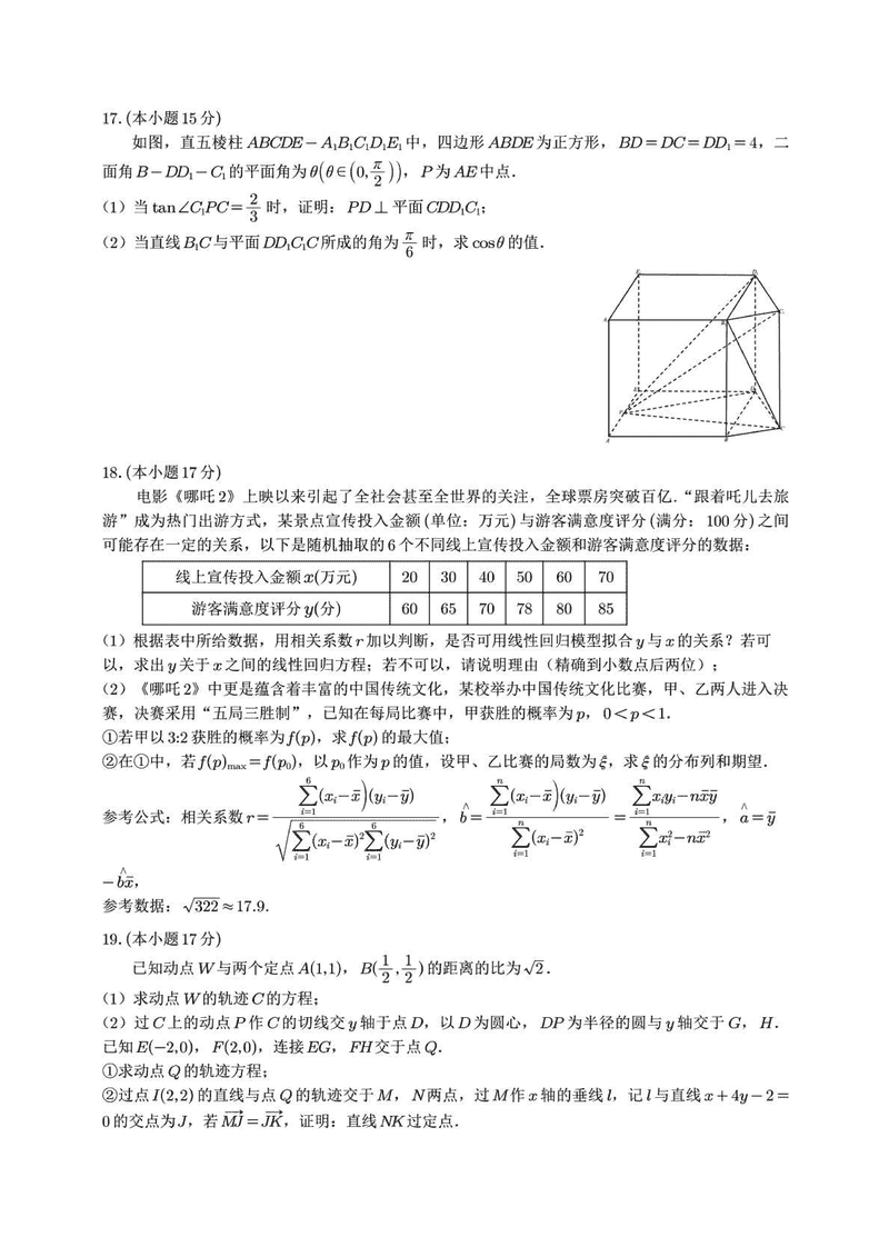 乐山市2025届高三下第三次调查研究数学试题及答案