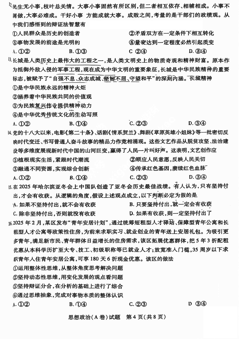 晋中三模2025年5月高考适应训练政治试题及答案 时间:2025-05-12 山西 文综试题 晋中三模2025年5月高考适应训练政治考试已于近日开考,为方便考生考后及时查看考试情况,查漏补缺、弥补不足,本文整理了试题答案解析相关信息! 汇总:晋中三模2025年5月高考适应训练考试试题及答案汇总 政治试题及答案解析