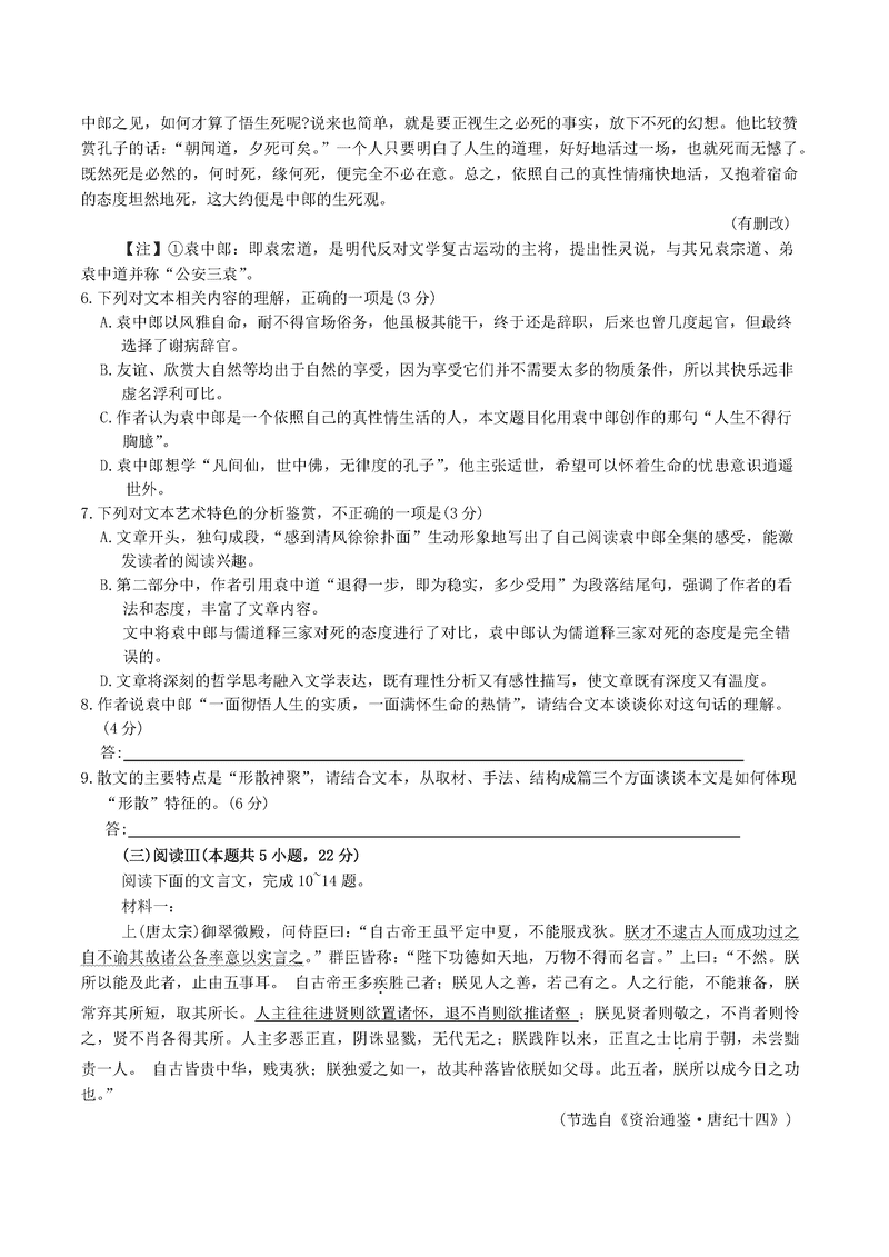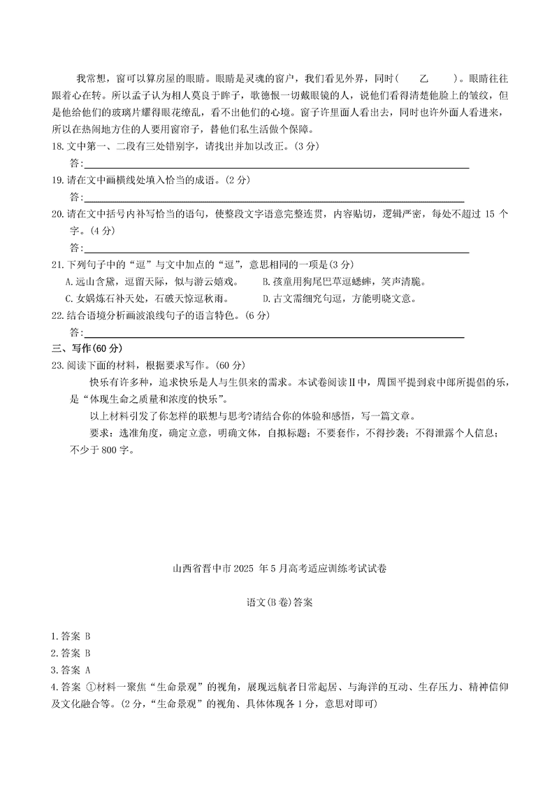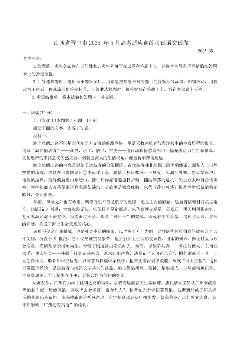 晋中三模2025年5月高考适应训练语文试题及答案 时间:2025-05-12 山西 语文试题 晋中三模2025年5月高考适应训练语文考试已于近日开考,为方便考生考后及时查看考试情况,查漏补缺、弥补不足,本文整理了试题答案解析相关信息! 汇总:晋中三模2025年5月高考适应训练考试试题及答案汇总 语文试题及答案解析