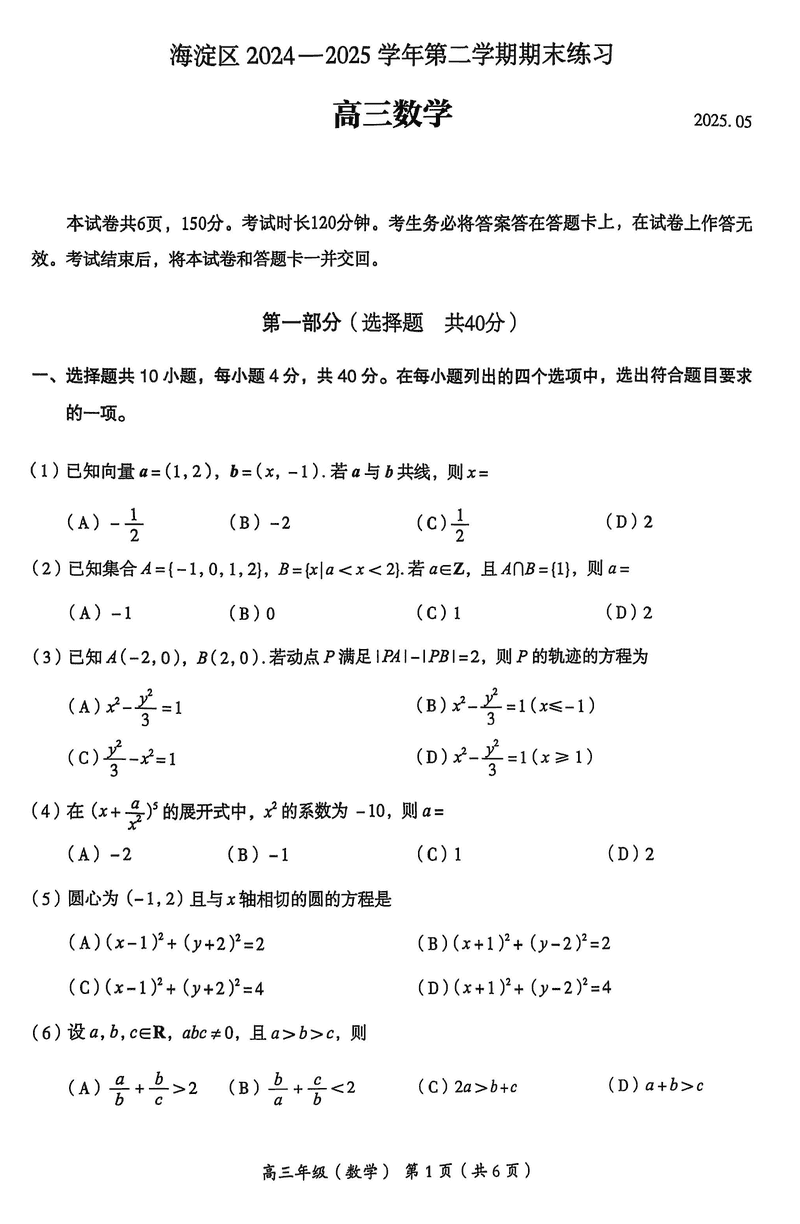 2025年北京市海淀区高三二模数学试题及答案 时间:2025-05-12 北京 数学试题 2025年北京市海淀区高三二模数学考试已于近日开考,为方便考生考后及时查看考试情况,查漏补缺、弥补不足,本文整理了试题答案解析相关信息! 汇总:2025年北京市海淀区高三二模试题及答案汇总 数学试题及答案解析