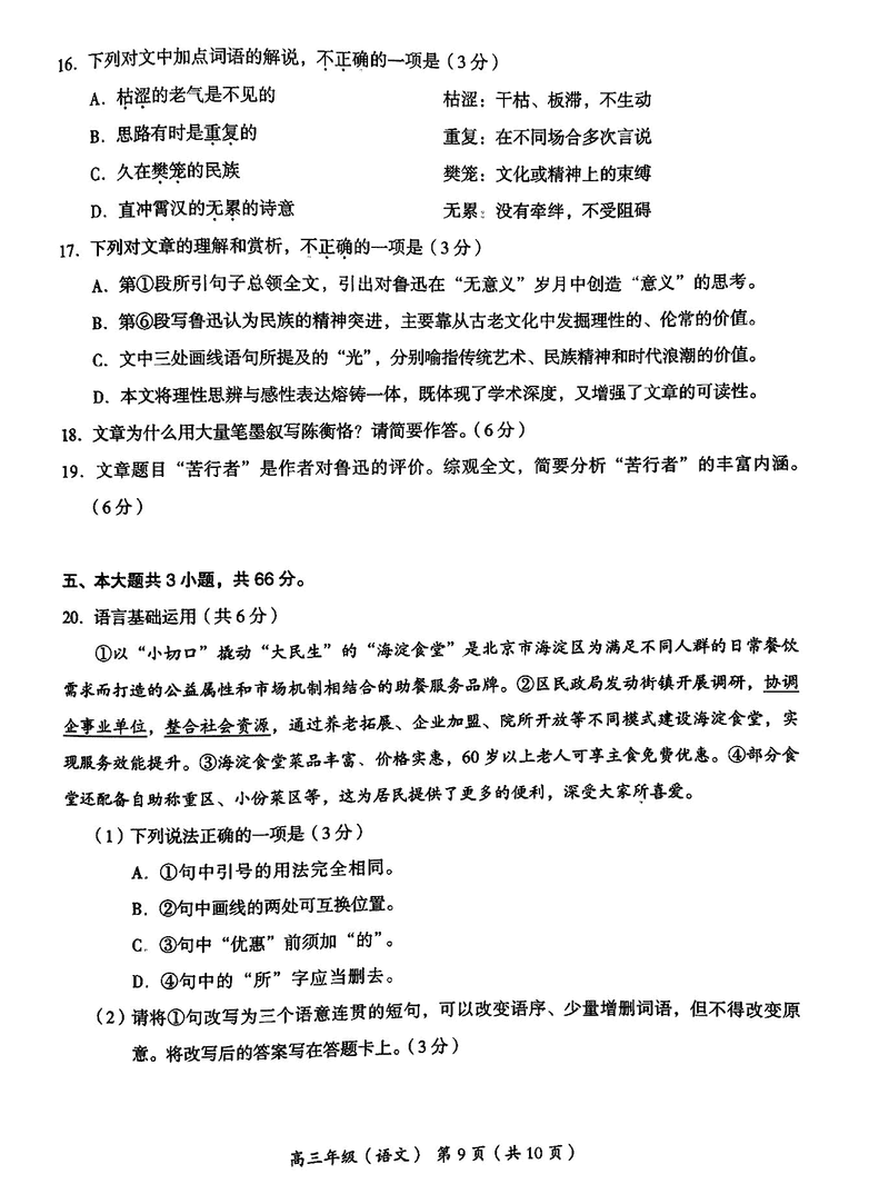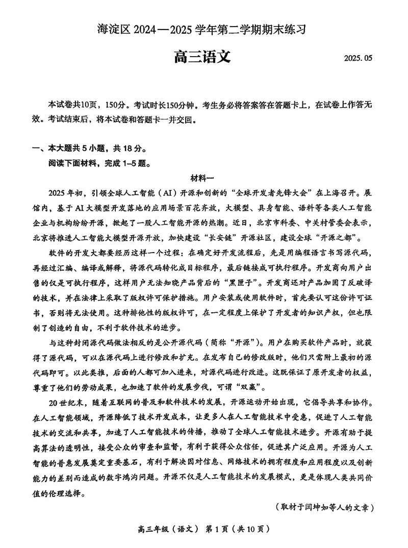 2025年北京市海淀区高三二模语文试题及答案 时间:2025-05-12 北京 语文试题 2025年北京市海淀区高三二模语文考试已于近日开考,为方便考生考后及时查看考试情况,查漏补缺、弥补不足,本文整理了试题答案解析相关信息! 汇总:2025年北京市海淀区高三二模试题及答案汇总 语文试题及答案解析