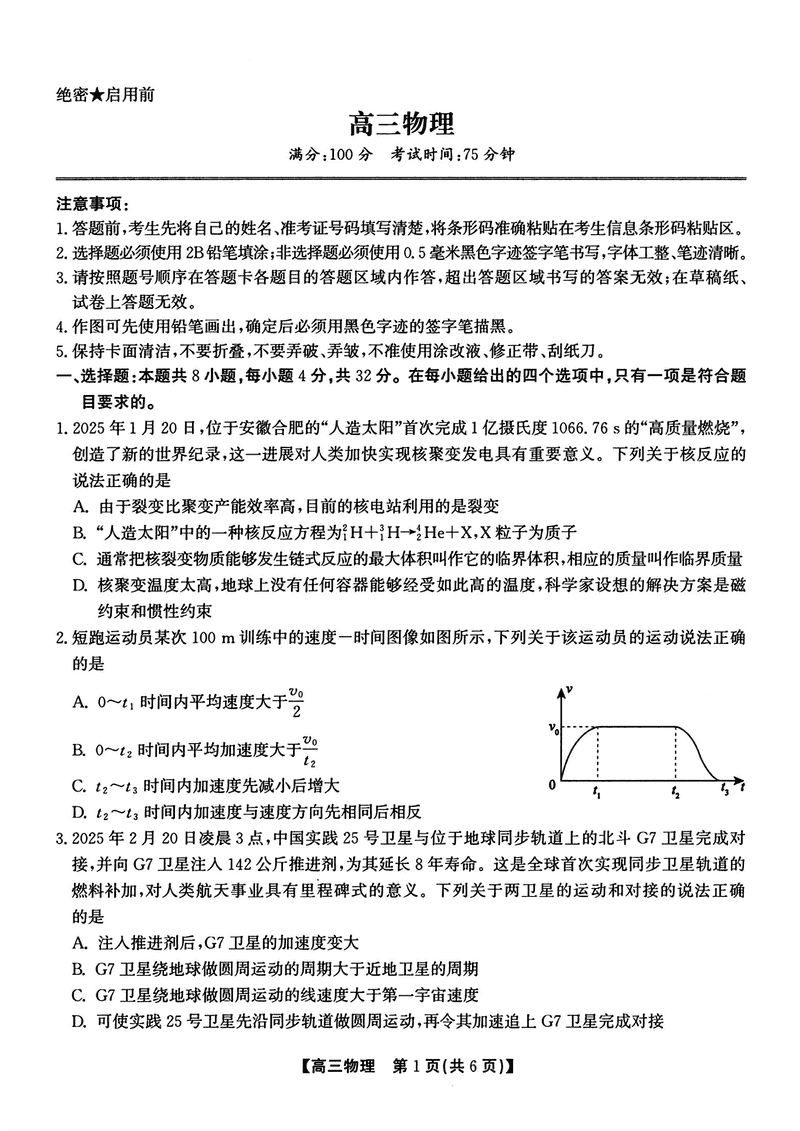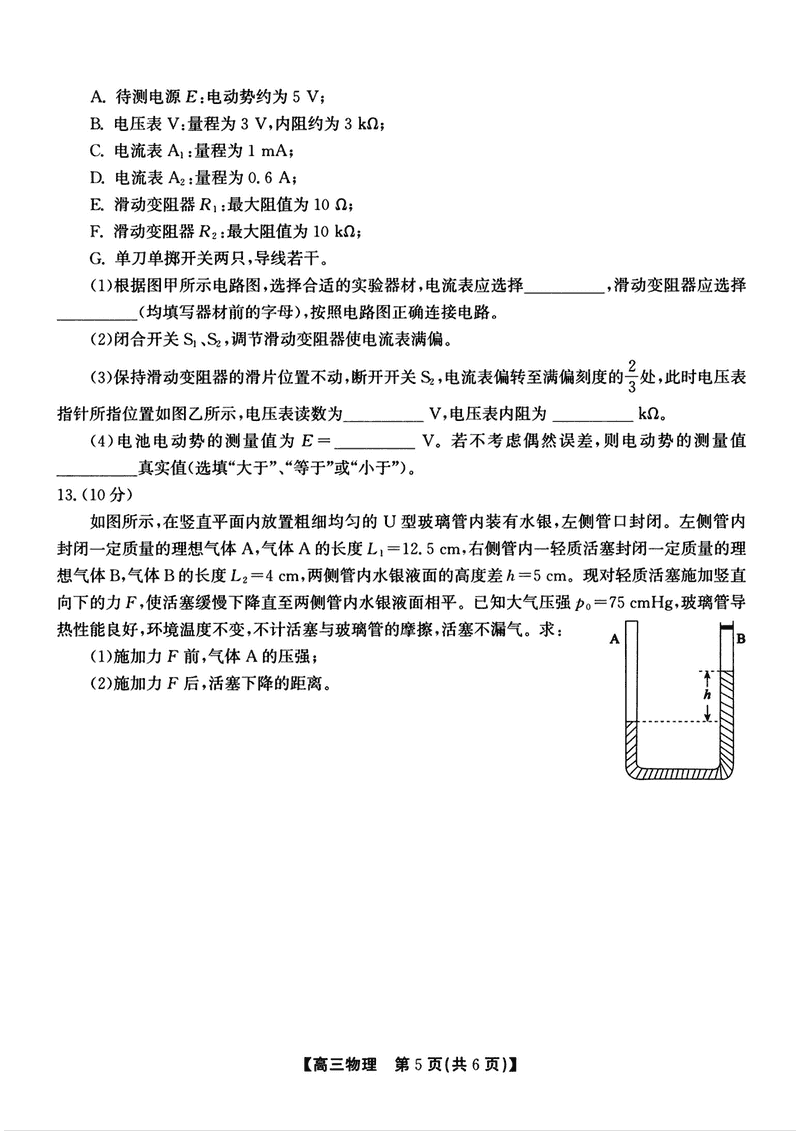2025届安徽省鼎尖名校联盟高三5月预测联考物理试题及答案