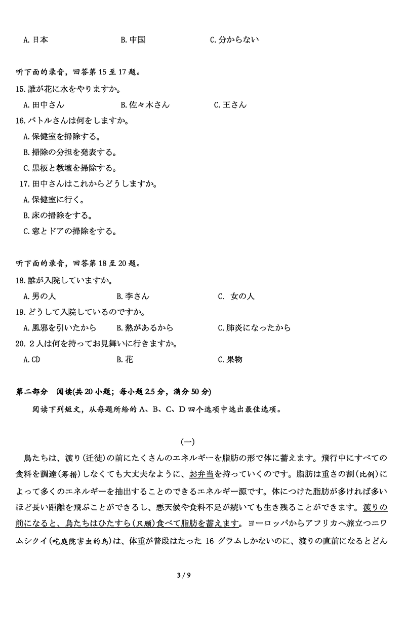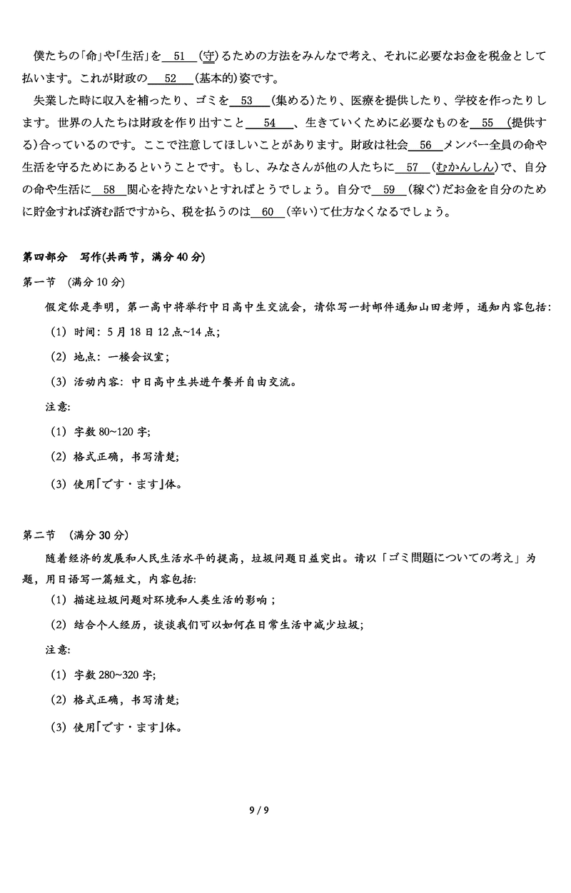 湖北圆创名校联盟2025届高三第四次联合测评日语试题及答案