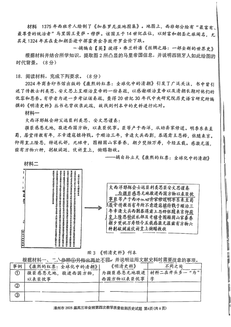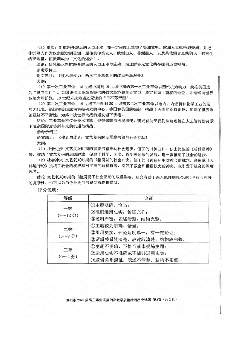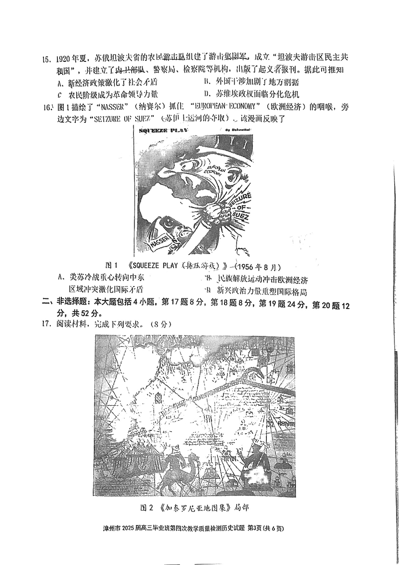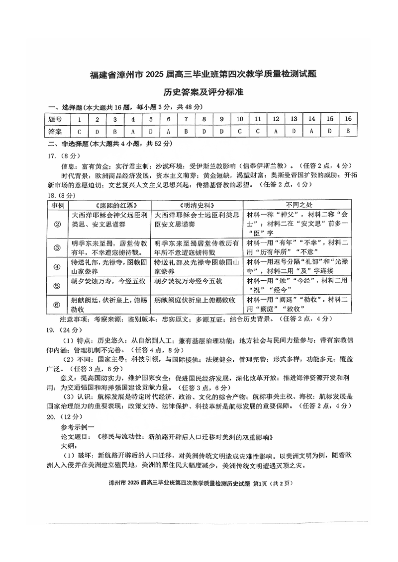 漳州四检2025届高三第四次教学质检历史试题及答案