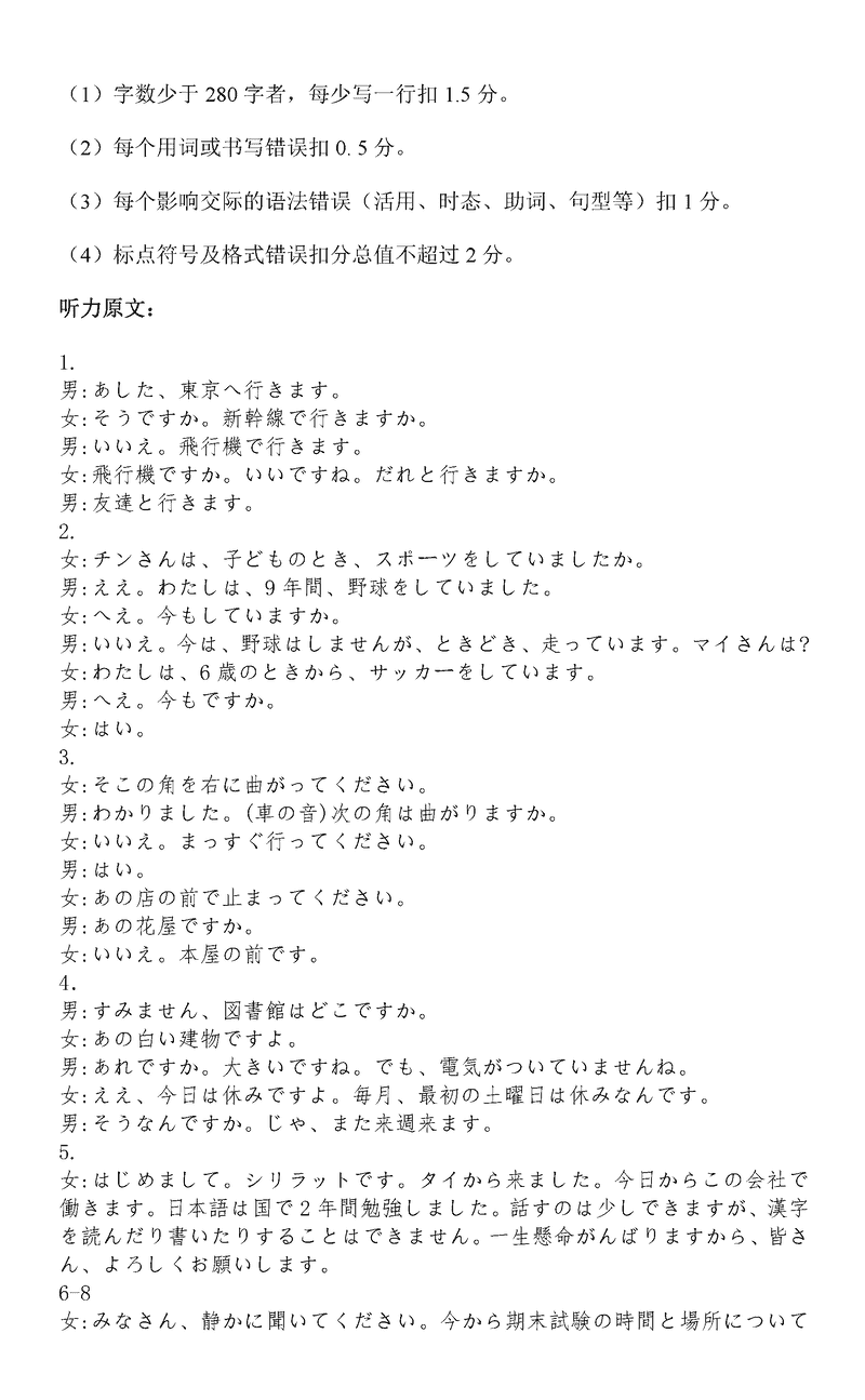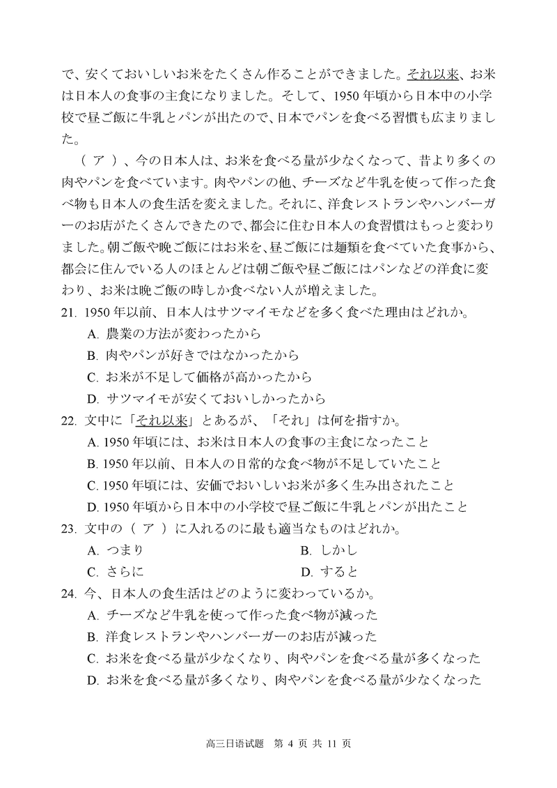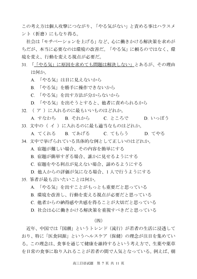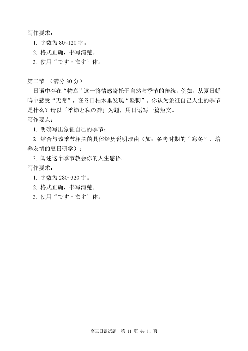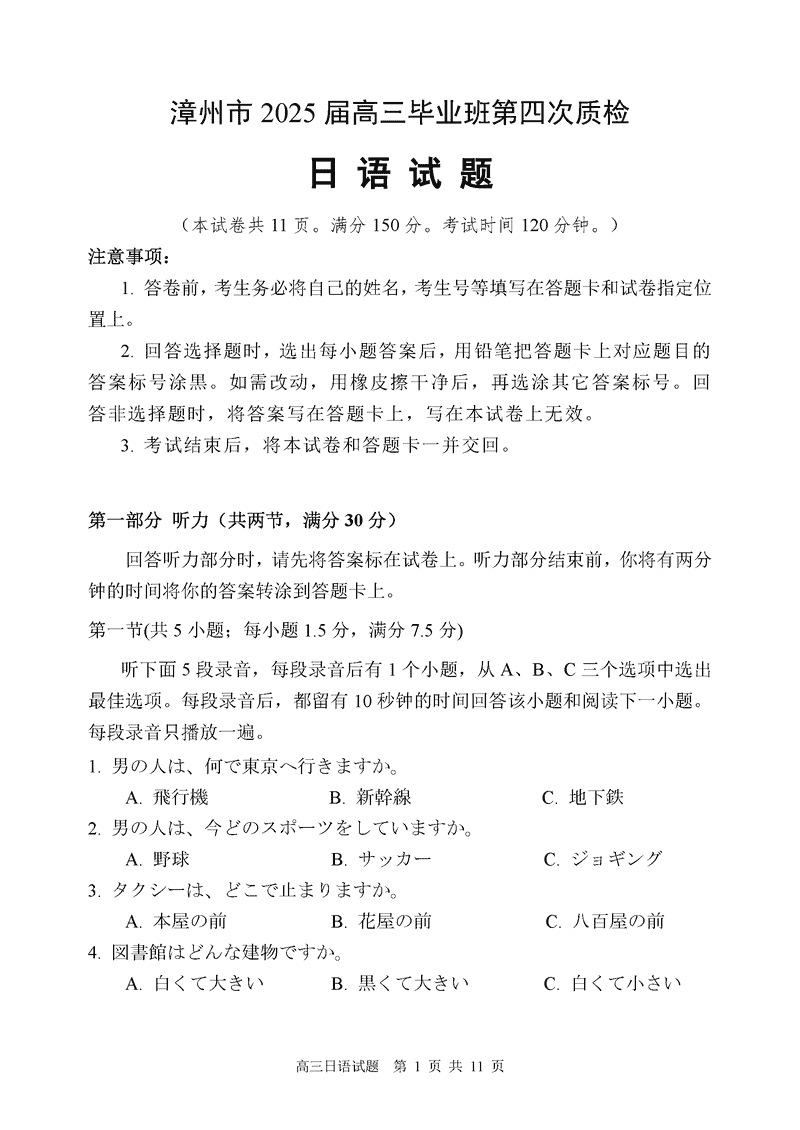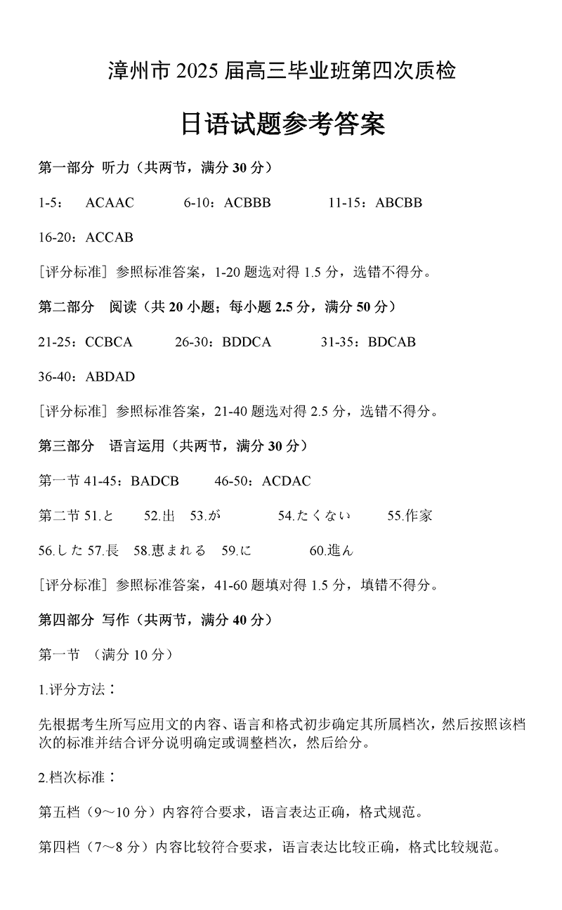 漳州四检2025届高三第四次教学质检日语试题及答案