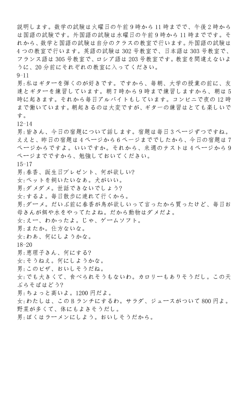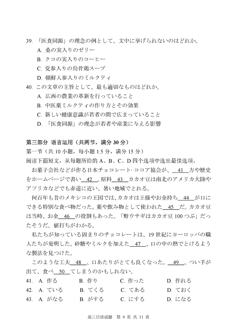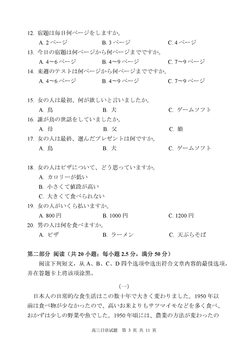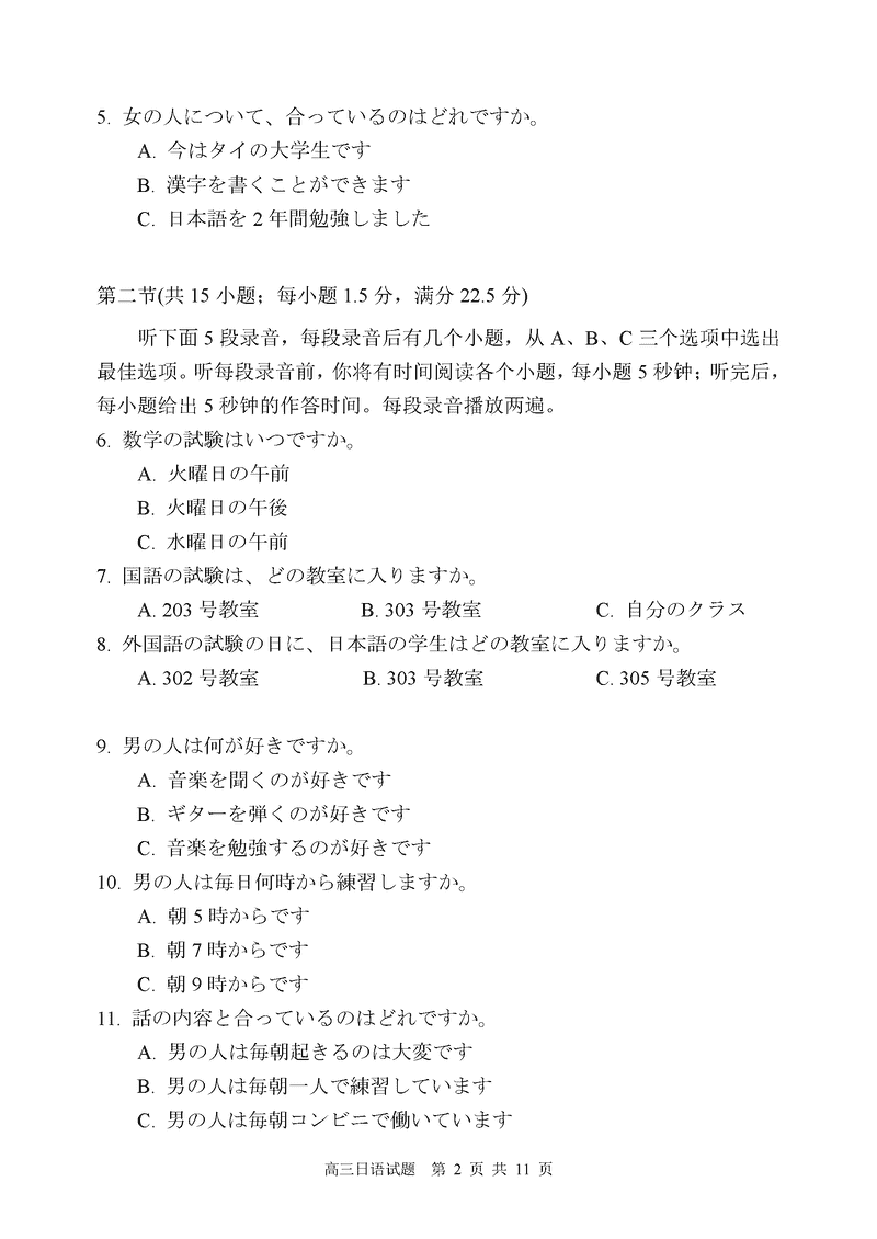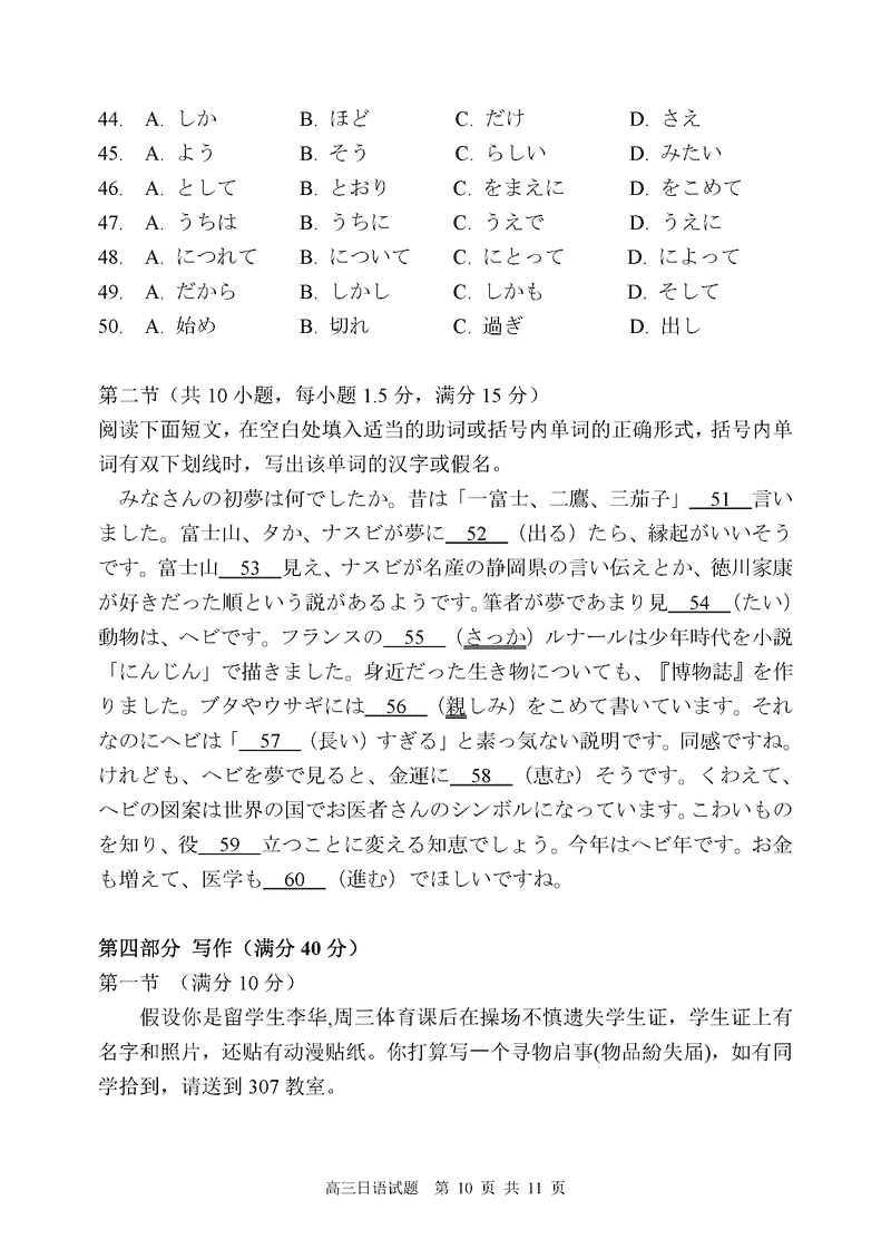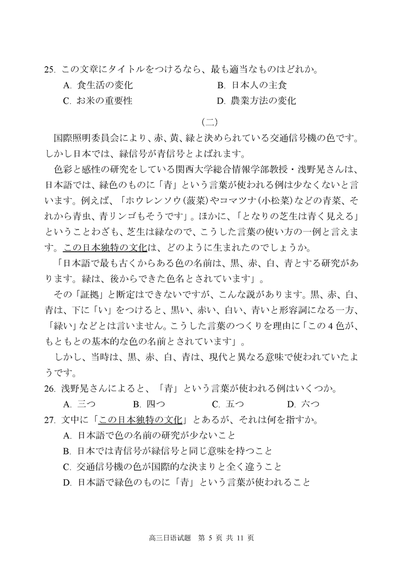 漳州四检2025届高三第四次教学质检日语试题及答案