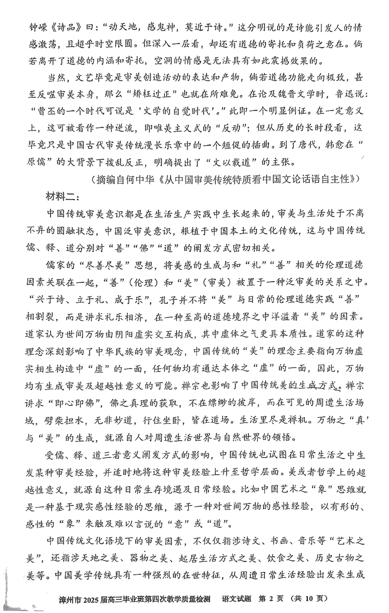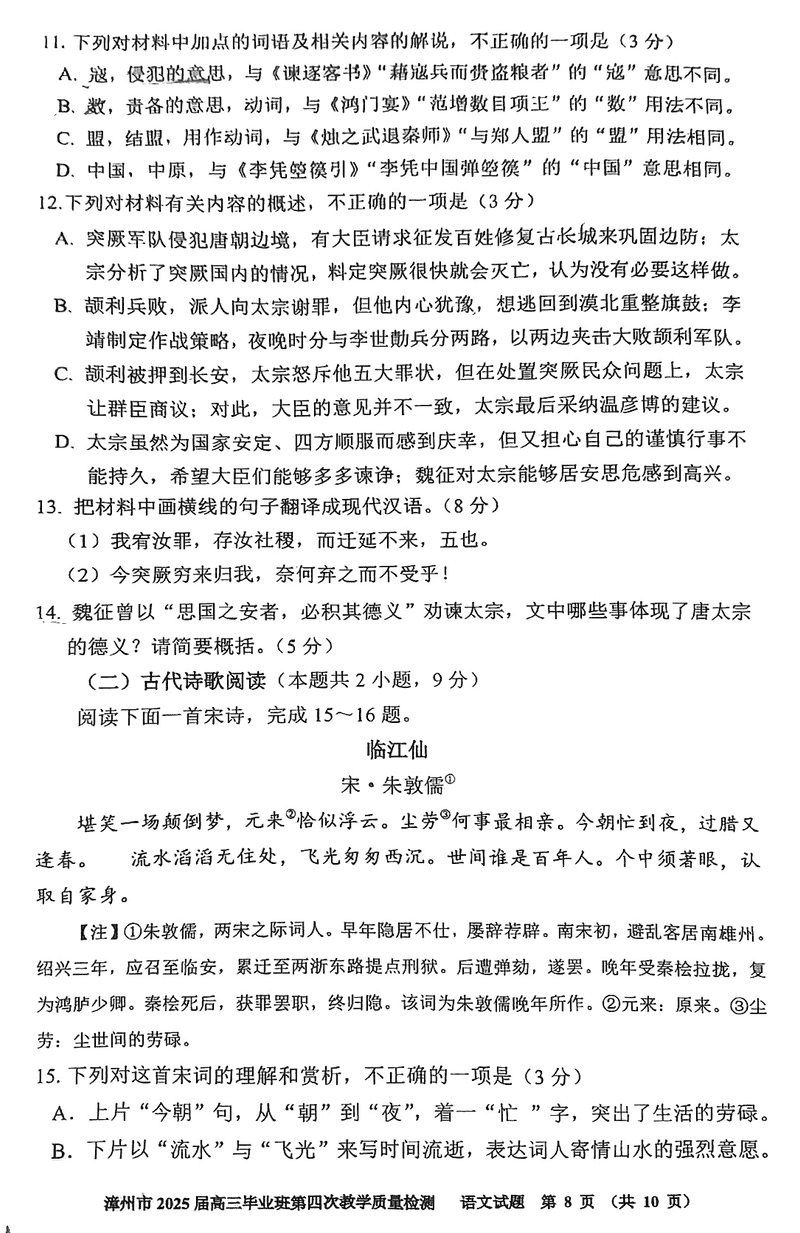 漳州四检2025届高三第四次教学质检语文试题及答案