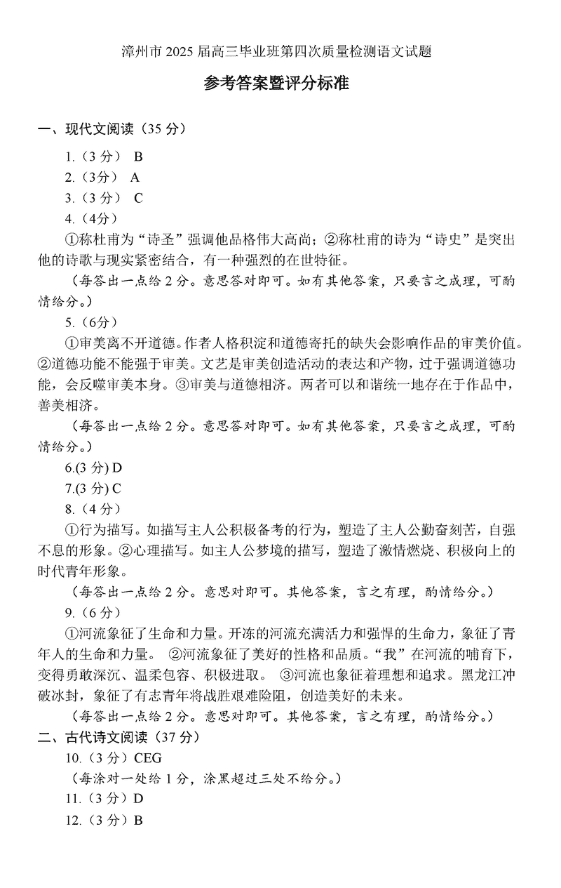 漳州四检2025届高三第四次教学质检语文考试已于近日开考,为方便考生考后及时查看考试情况,查漏补缺、弥补不足,本文整理了试题答案解析相关信息!