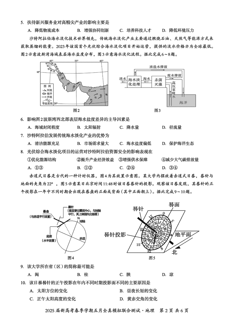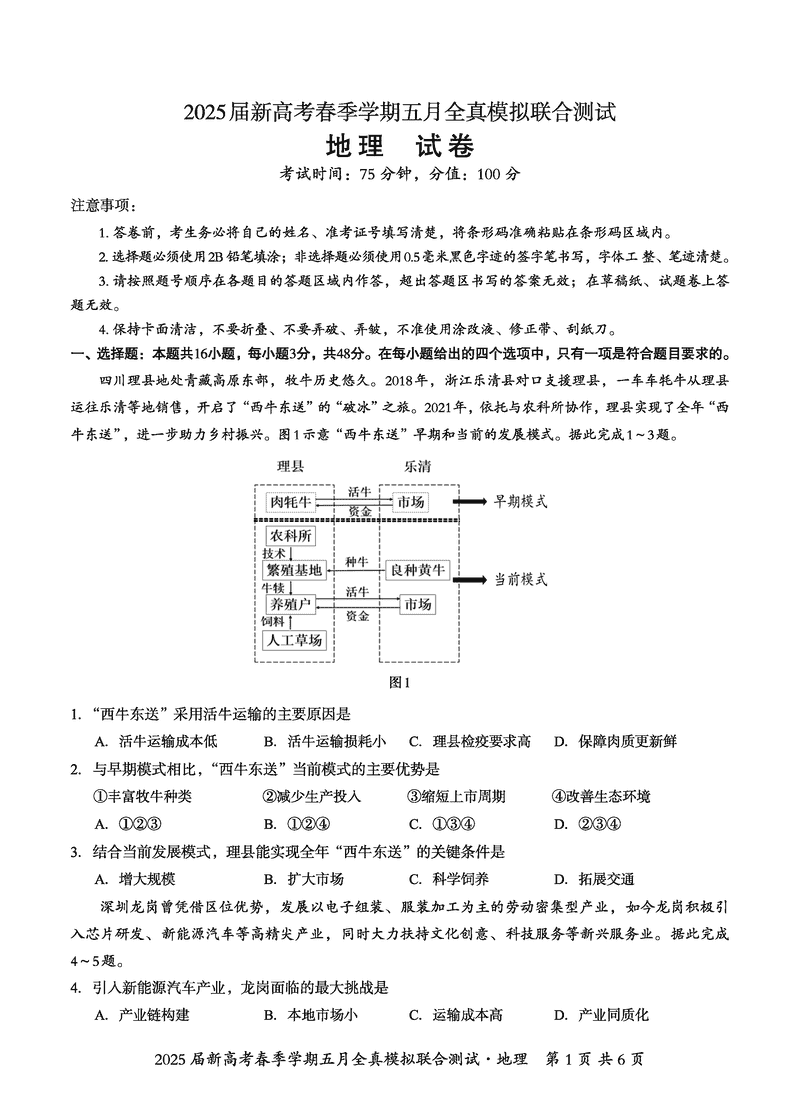 2025届广西邕衡教育名校联盟高三5月全真模拟测试地理试题及答案