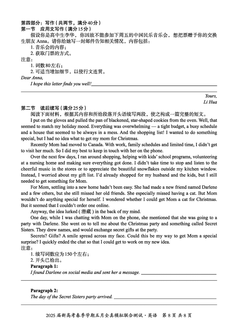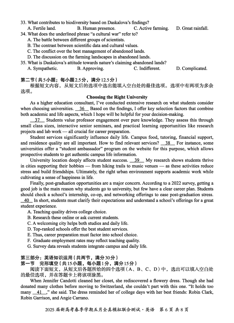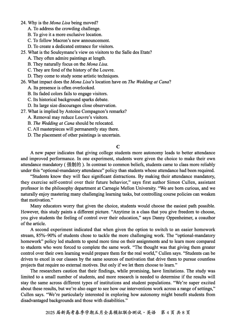 2025届广西邕衡教育名校联盟高三5月全真模拟测试英语试题及答案