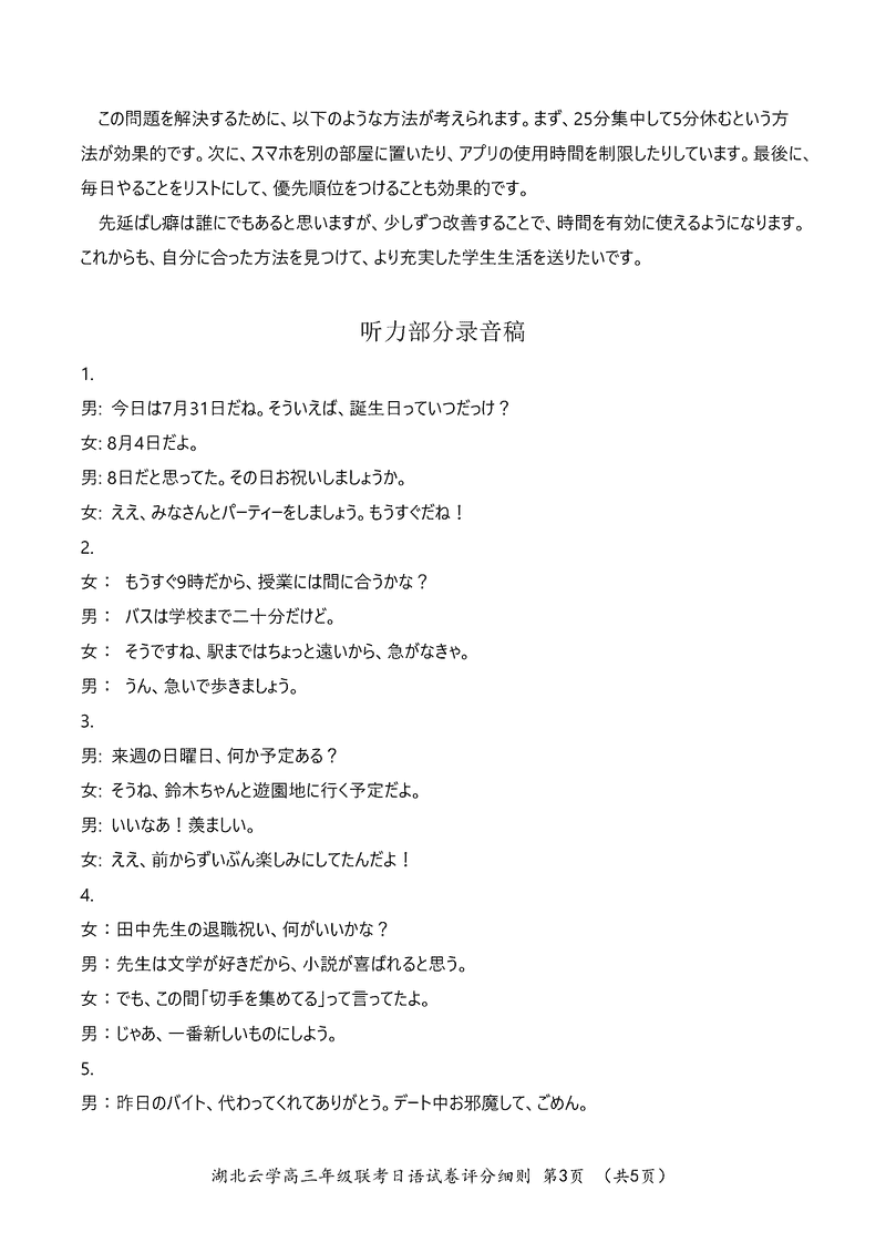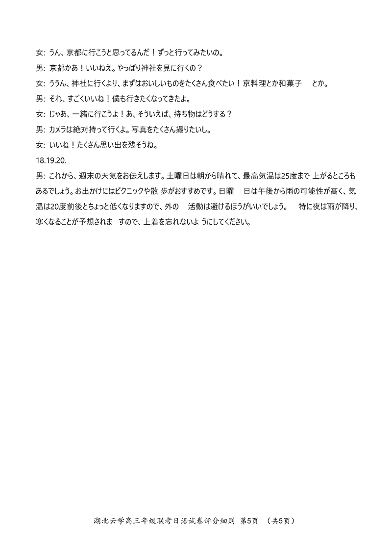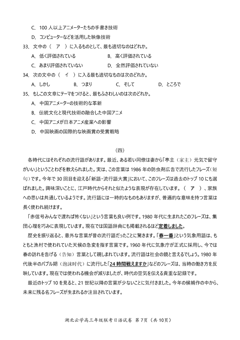 湖北鄂东南2025年春季高三五月模拟考日语试题及答案