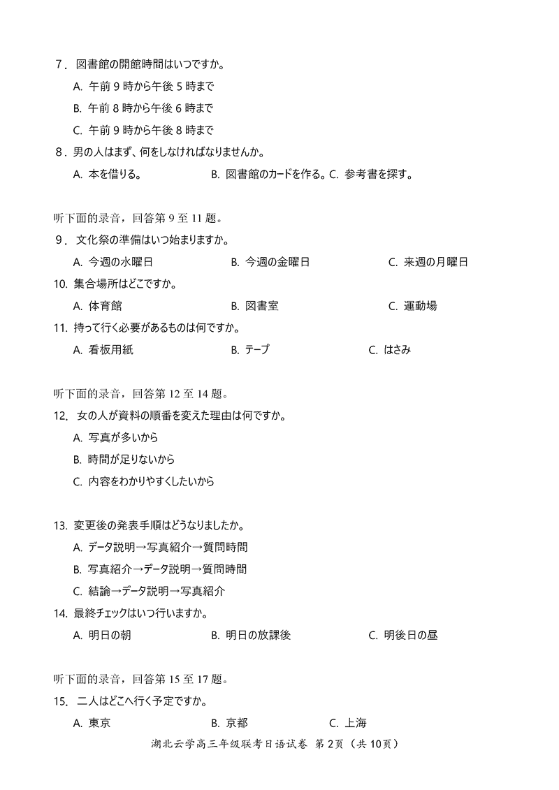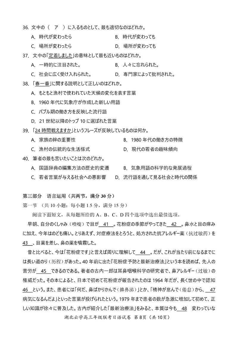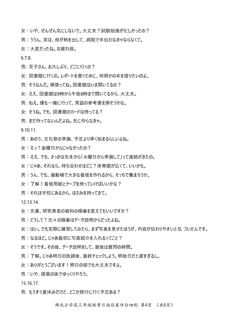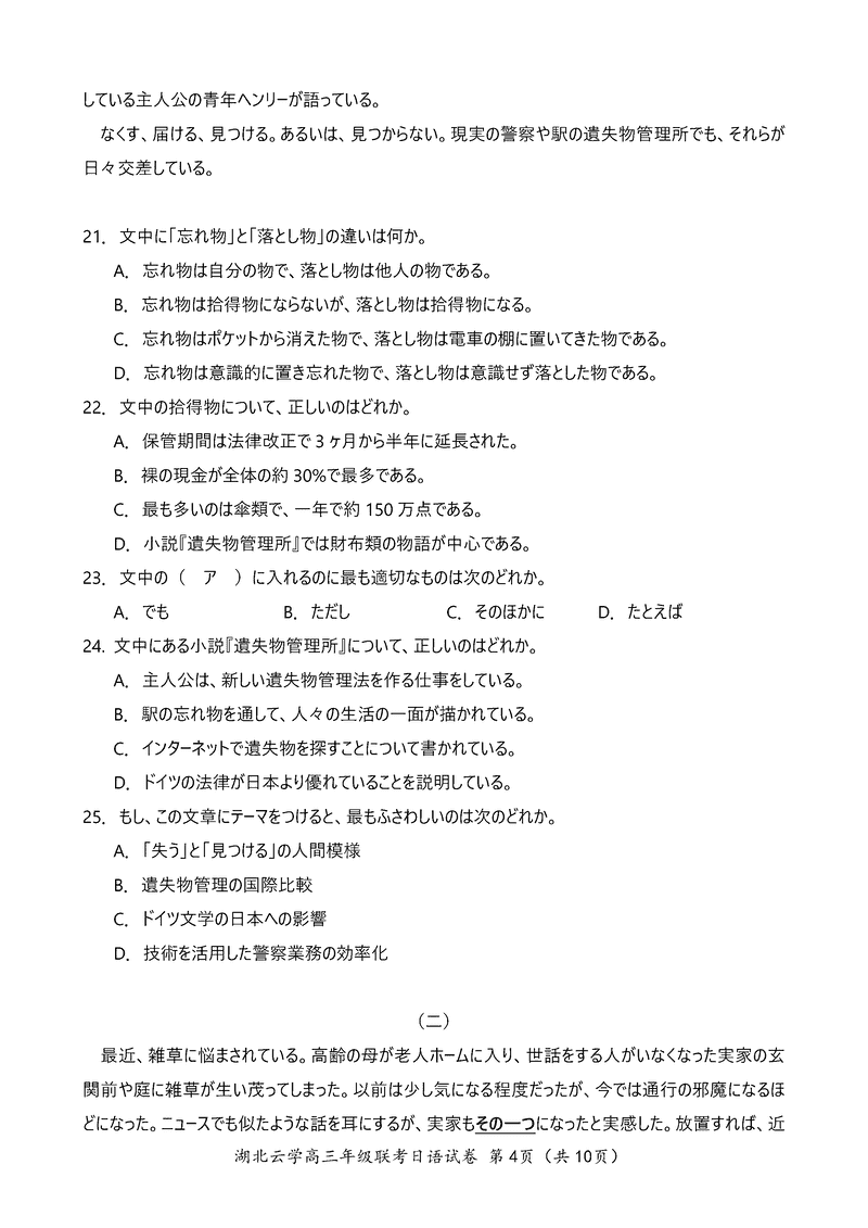 湖北鄂东南2025年春季高三五月模拟考日语试题及答案
