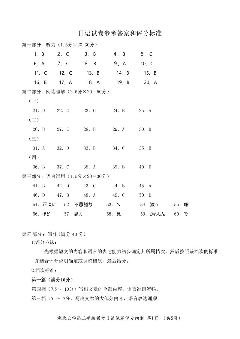 湖北省鄂东南2025年春季高三五月模拟考日语考试已于近日开考,为方便考生考后及时查看考试情况,查漏补缺、弥补不足,本文整理了试题答案解析相关信息!
