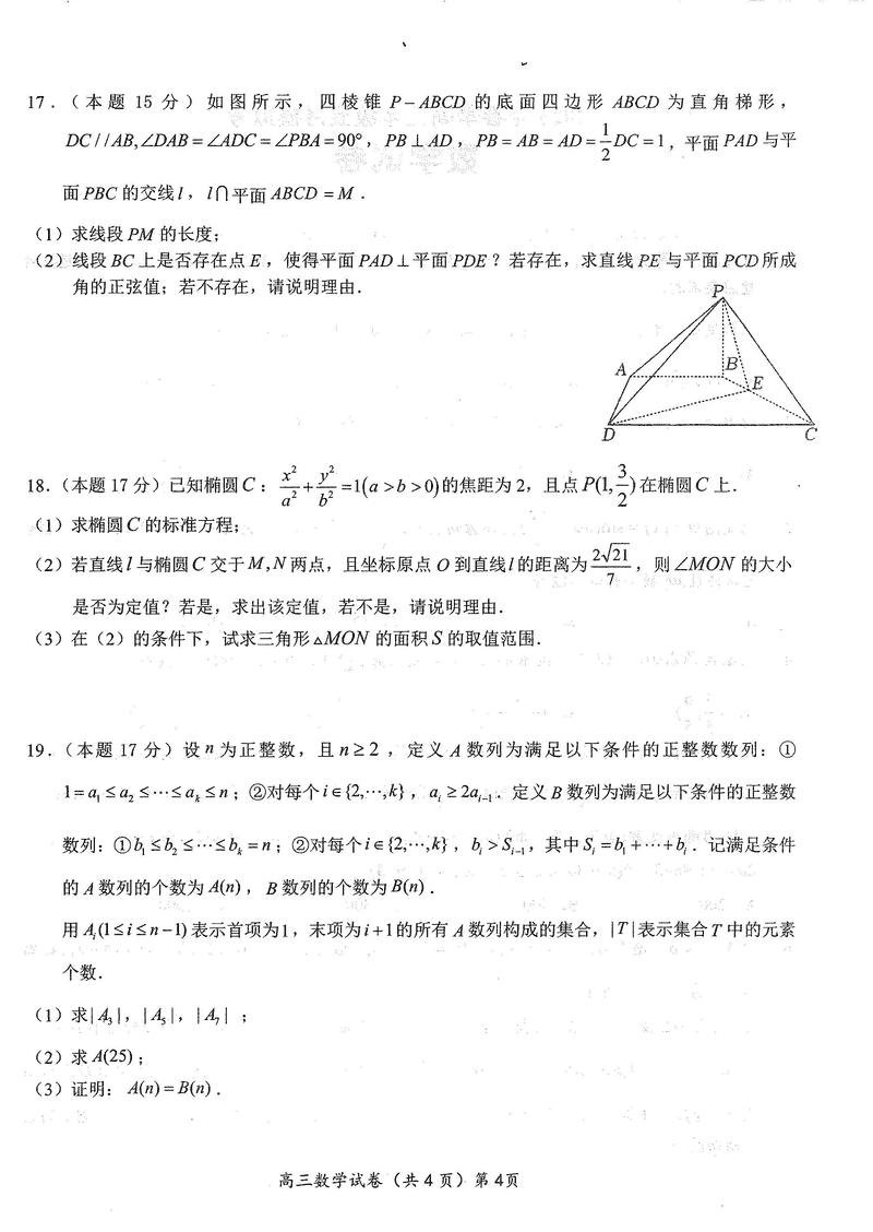 湖北鄂东南2025年春季高三五月模拟考数学试题及答案