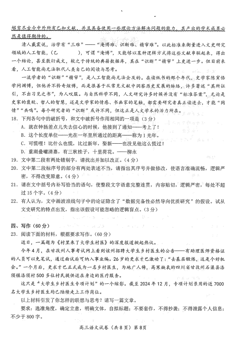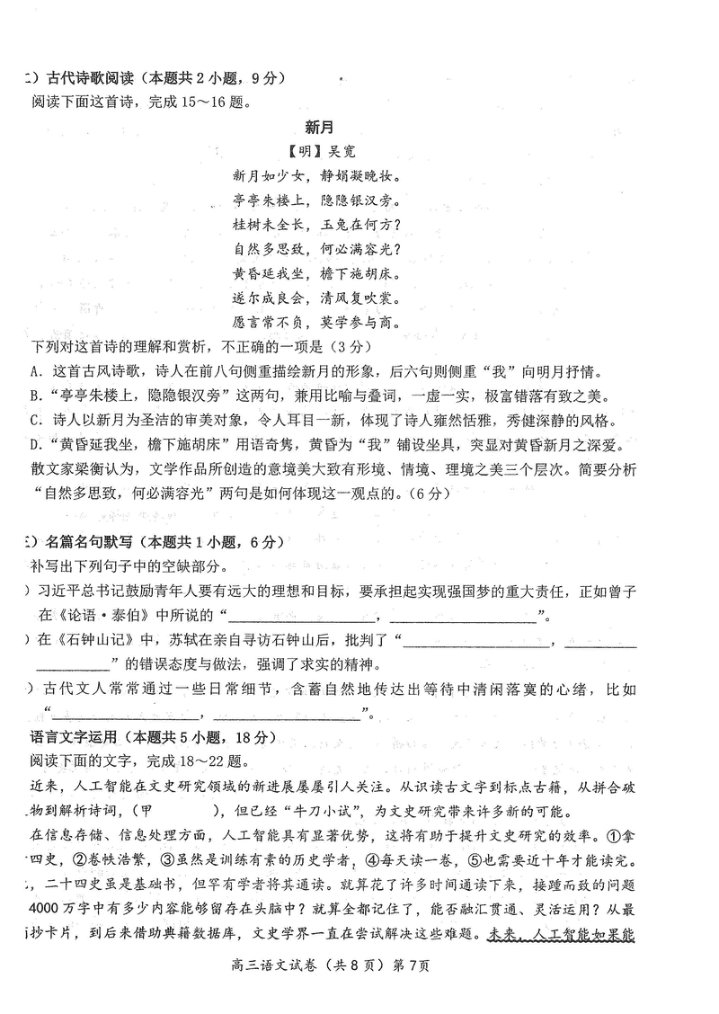 湖北鄂东南2025年春季高三五月模拟考语文试题及答案
