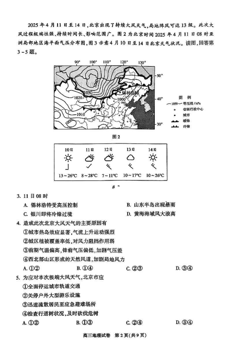 2025年北京朝阳区高三二模地理试题及答案 时间:2025-05-13 北京 文综试题 2025年北京朝阳区高三二模地理考试已于近日开考,为方便考生考后及时查看考试情况,查漏补缺、弥补不足,本文整理了试题答案解析相关信息! 汇总:北京市朝阳区2025年高三二模试题及答案汇总 地理试题及答案解析