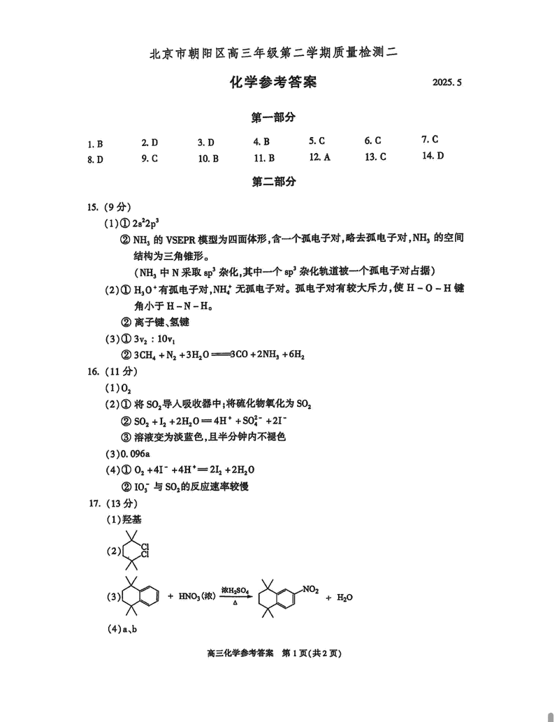 2025年北京朝阳区高三二模化学试题及答案 时间:2025-05-13 北京 理综试题 2025年北京朝阳区高三二模化学考试已于近日开考,为方便考生考后及时查看考试情况,查漏补缺、弥补不足,本文整理了试题答案解析相关信息! 汇总:北京市朝阳区2025年高三二模试题及答案汇总 化学试题及答案解析