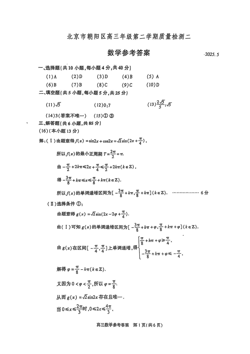 2025年北京朝阳区高三二模数学试题及答案 时间:2025-05-13 北京 数学试题 2025年北京朝阳区高三二模数学考试已于近日开考,为方便考生考后及时查看考试情况,查漏补缺、弥补不足,本文整理了试题答案解析相关信息! 汇总:北京市朝阳区2025年高三二模试题及答案汇总 数学试题及答案解析