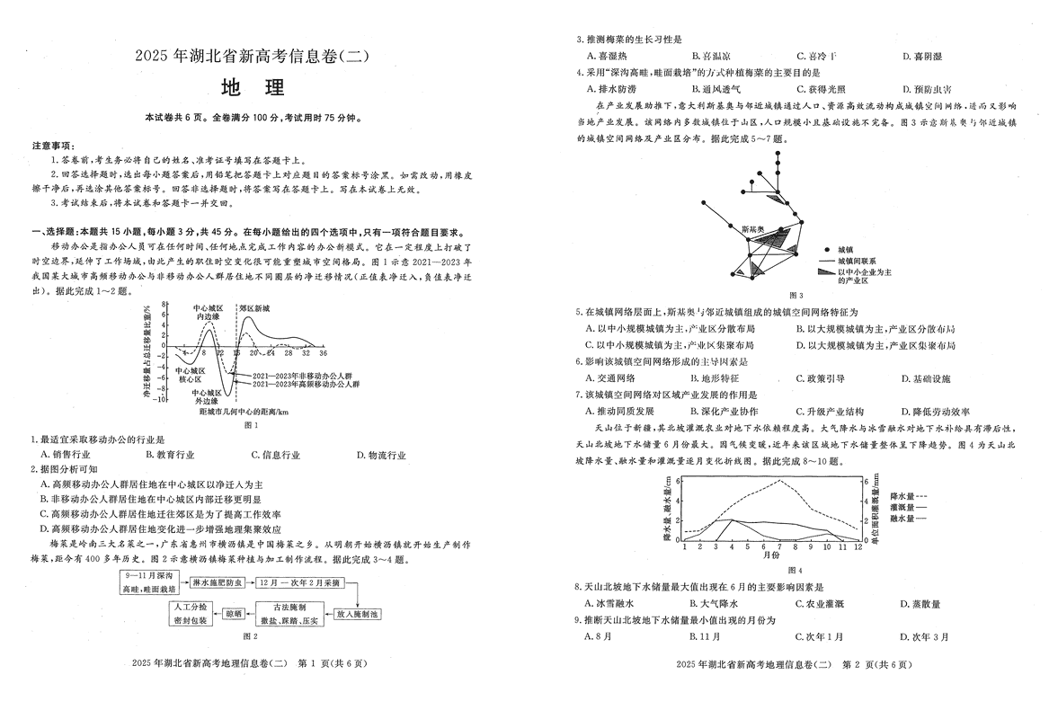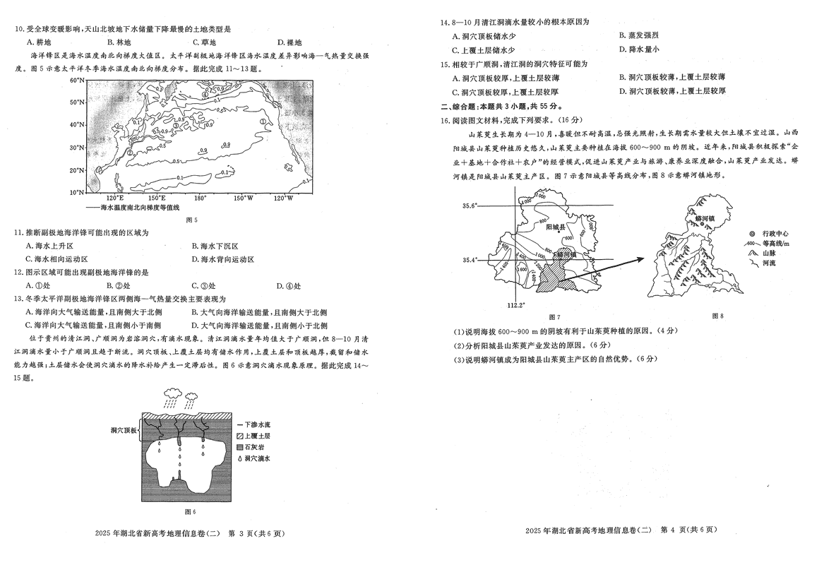 2025年湖北省新高考信息卷(二)地理试题及答案 时间:2025-05-14 湖北 文综试题 2025年湖北省新高考信息卷(二)地理考试已于近日开考,为方便考生考后及时查看考试情况,查漏补缺、弥补不足,本文整理了试题答案解析相关信息! 汇总:2025年湖北省新高考信息卷(二)试题及答案汇总 地理试题及答案解析