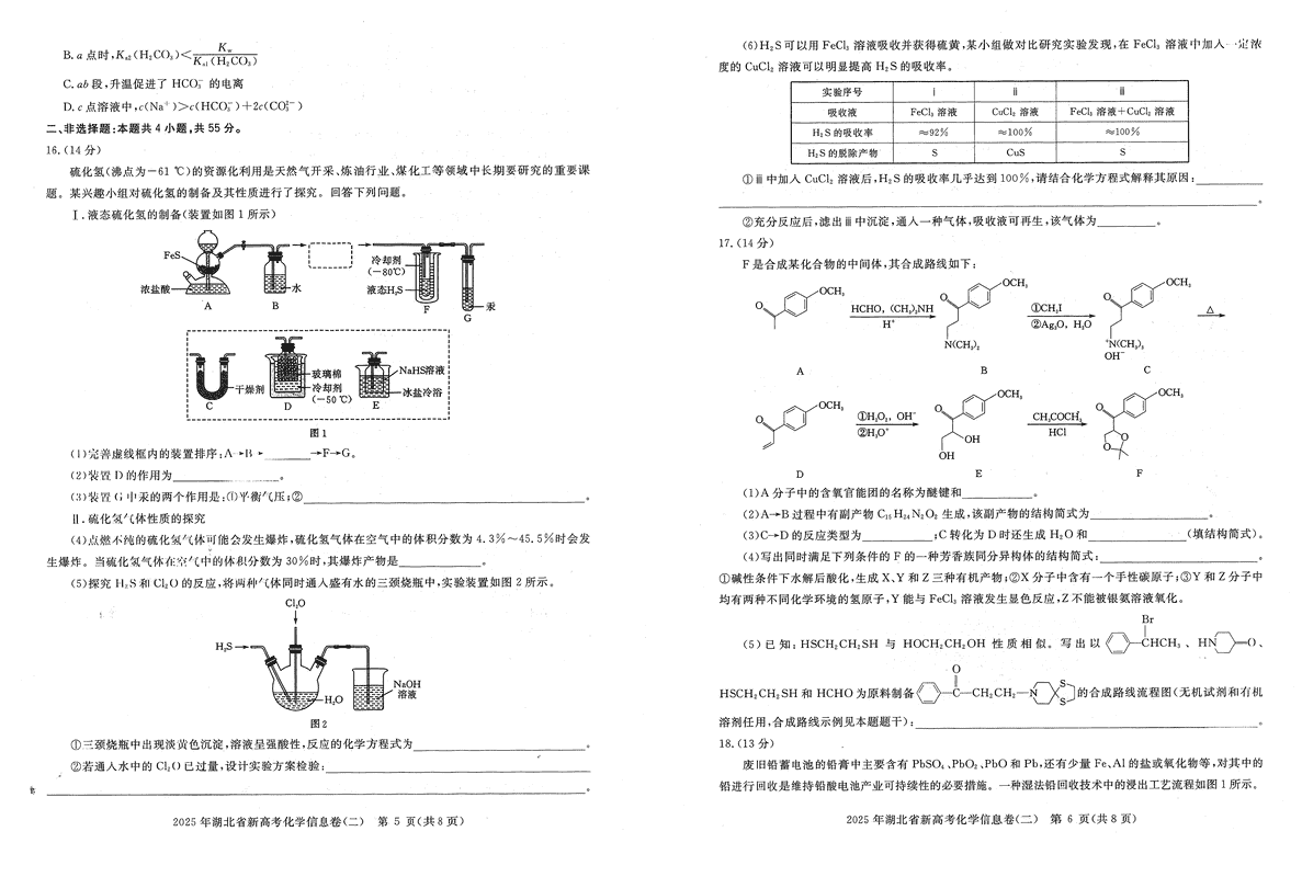 2025年湖北省新高考信息卷(二)化学试题及答案 时间:2025-05-14 湖北 理综试题 2025年湖北省新高考信息卷(二)化学考试已于近日开考,为方便考生考后及时查看考试情况,查漏补缺、弥补不足,本文整理了试题答案解析相关信息! 汇总:2025年湖北省新高考信息卷(二)试题及答案汇总 化学试题及答案解析
