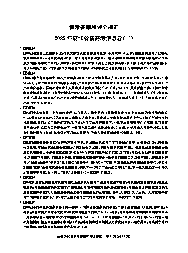 2025年湖北省新高考信息卷(二)生物试题及答案 时间:2025-05-14 湖北 理综试题 2025年湖北省新高考信息卷(二)生物考试已于近日开考,为方便考生考后及时查看考试情况,查漏补缺、弥补不足,本文整理了试题答案解析相关信息! 汇总:2025年湖北省新高考信息卷(二)试题及答案汇总 生物试题及答案解析