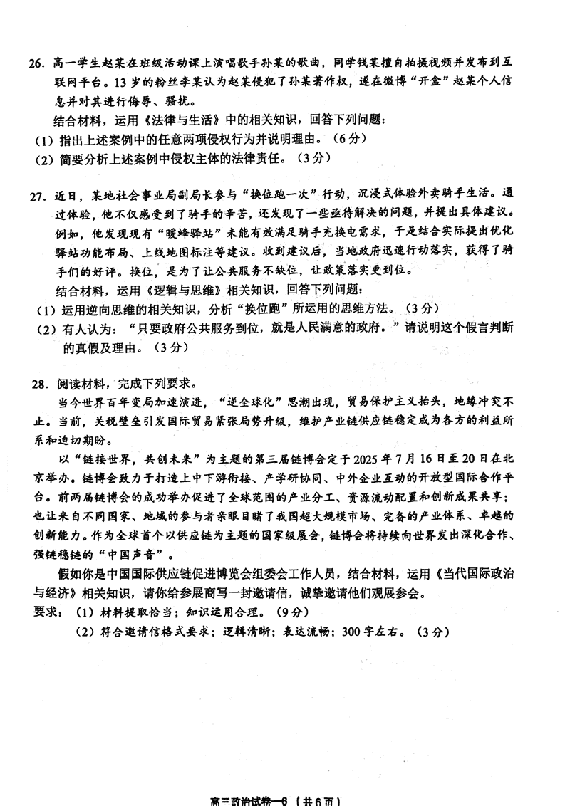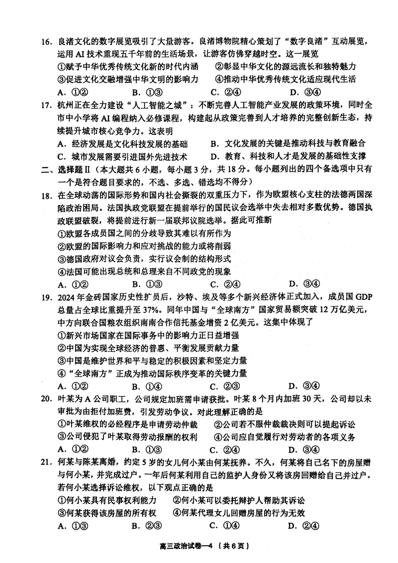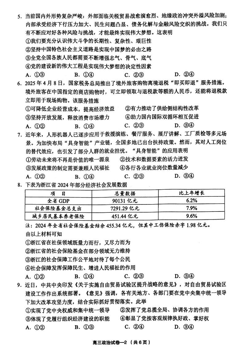 2025年金华市义乌市高三三模政治试题及答案 时间:2025-05-14 浙江 文综试题 2025年金华市义乌市高三三模政治考试已于近日开考,为方便考生考后及时查看考试情况,查漏补缺、弥补不足,本文整理了试题答案解析相关信息! 汇总:2025年金华市义乌市高三三模试题及答案汇总 政治试题及答案解析