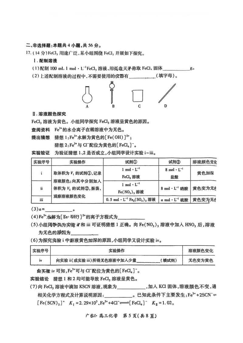广东上进联考2025届高三5月联合测评化学试题及答案 时间:2025-05-14 广东 理综试题 广东上进联考2025届高三5月联合测评化学考试已于近日开考,为方便考生考后及时查看考试情况,查漏补缺、弥补不足,本文整理了试题答案解析相关信息! 汇总:广东上进联考2025届高三5月联合测评试题及答案汇总 化学试题及答案解析