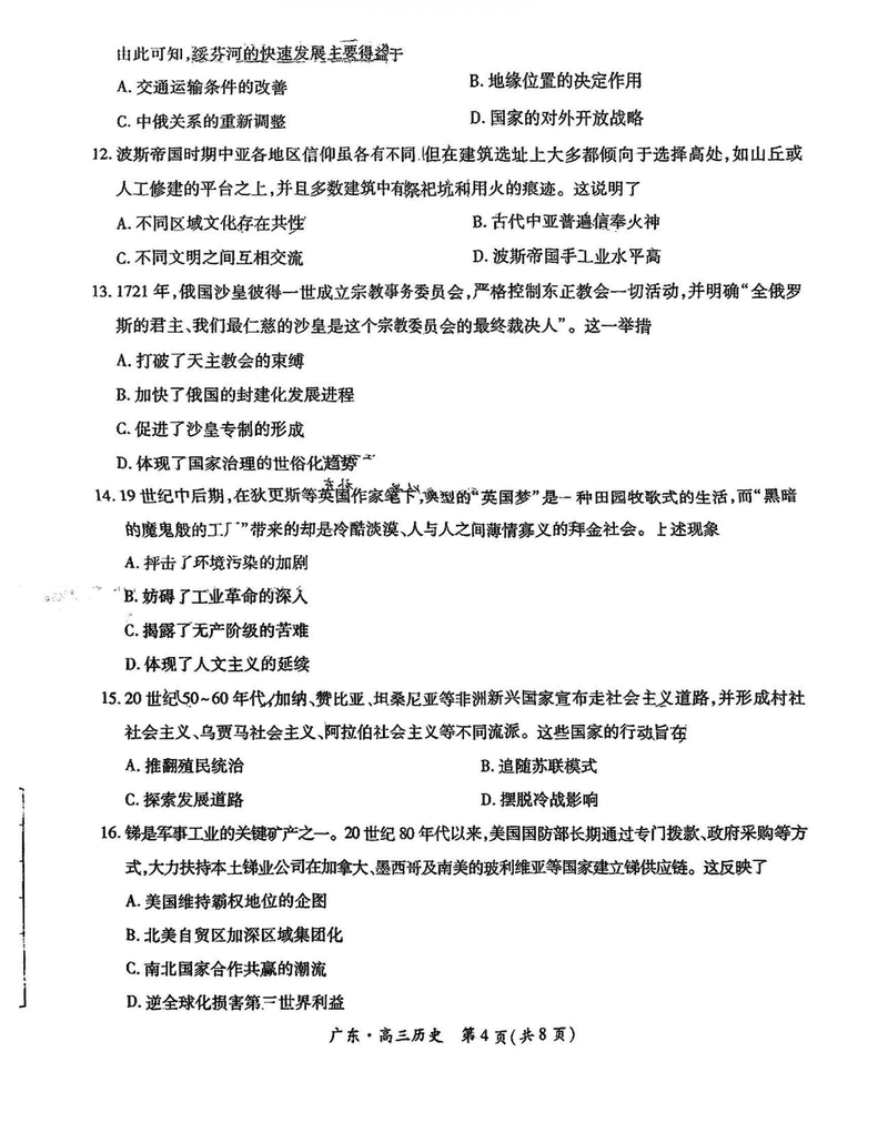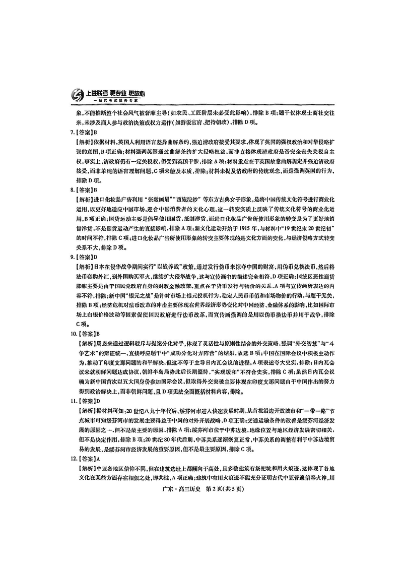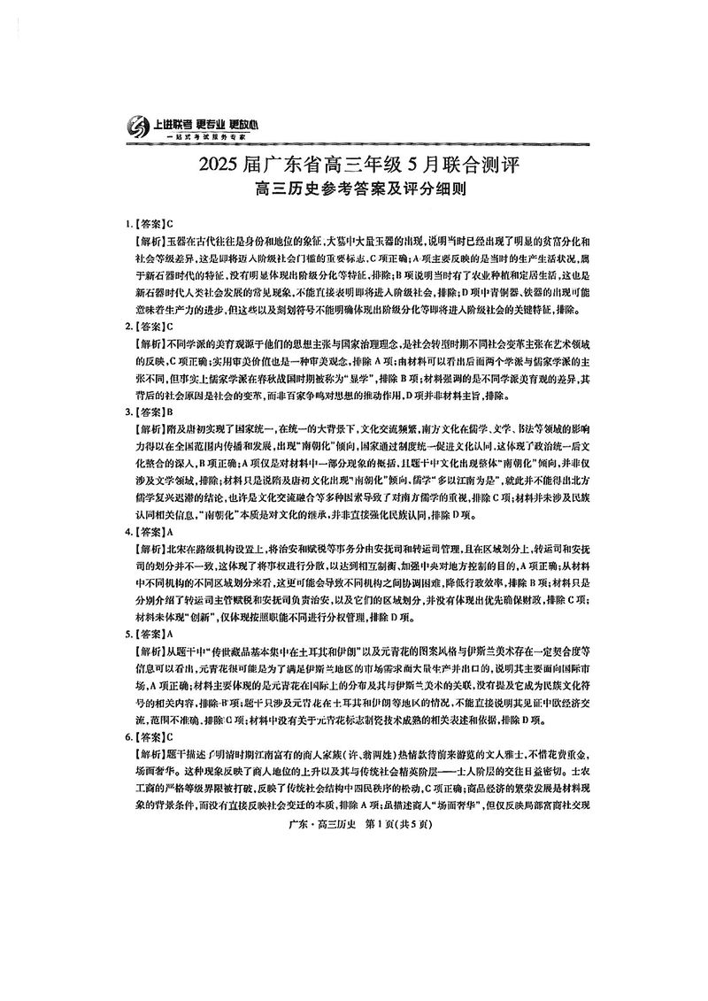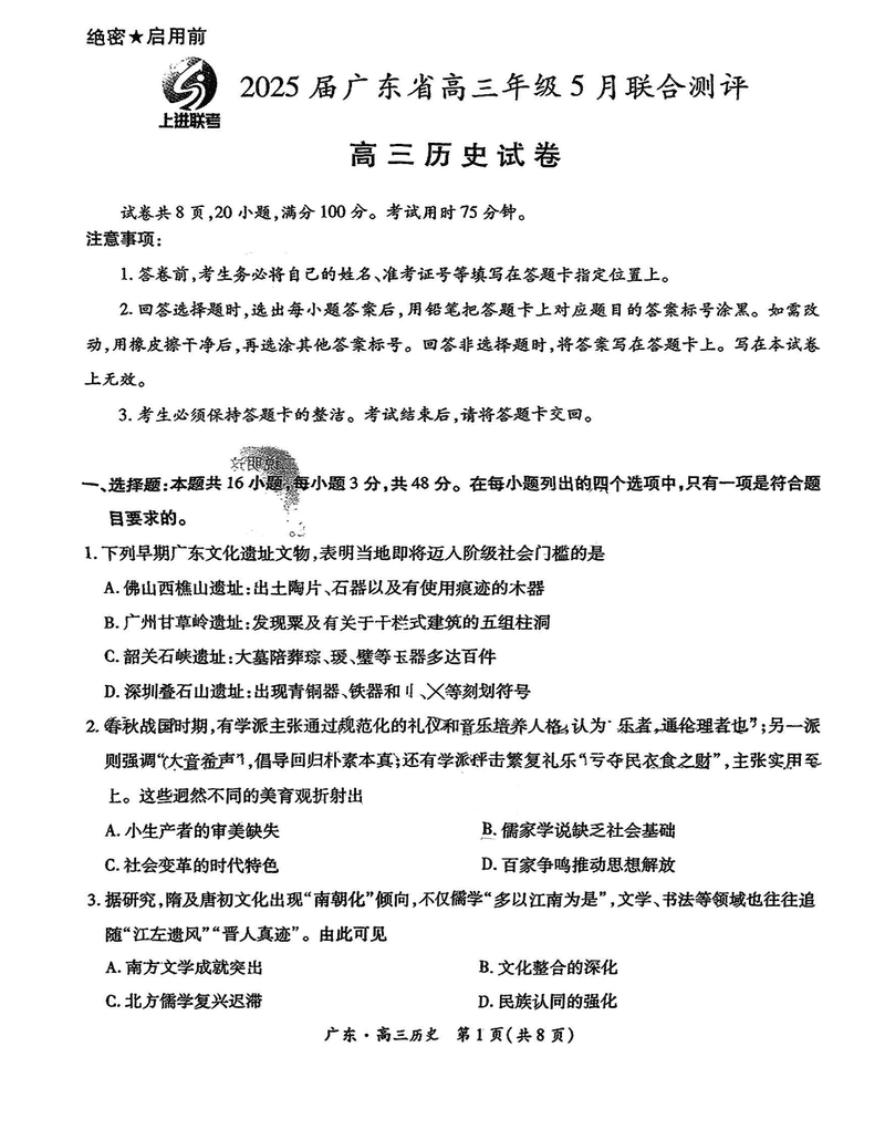 广东上进联考2025届高三5月联合测评历史试题及答案 时间:2025-05-14 广东 文综试题 广东上进联考2025届高三5月联合测评历史考试已于近日开考,为方便考生考后及时查看考试情况,查漏补缺、弥补不足,本文整理了试题答案解析相关信息! 汇总:广东上进联考2025届高三5月联合测评试题及答案汇总 历史试题及答案解析