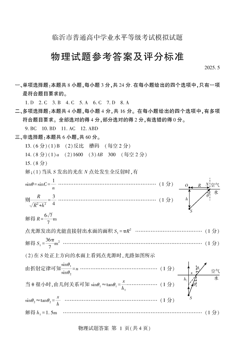 山东临沂2025高三二模物理试题及答案 时间:2025-05-14 山东 理综试题 山东临沂2025高三二模物理考试已于近日开考,为方便考生考后及时查看考试情况,查漏补缺、弥补不足,本文整理了试题答案解析相关信息! 汇总:山东临沂2025高三二模试题及答案汇总 物理试题及答案解析