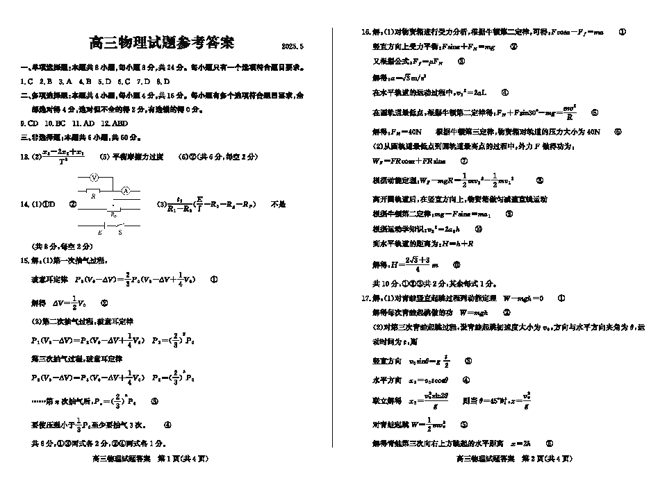 山东滨州2025届高三二模物理试题及答案 时间:2025-05-14 山东 理综试题 山东滨州2025届高三二模物理考试已于近日开考,为方便考生考后及时查看考试情况,查漏补缺、弥补不足,本文整理了试题答案解析相关信息! 汇总:山东滨州2025届高三二模试题及答案汇总 物理试题及答案解析