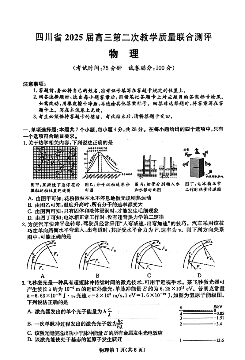 2025届四川高三第二次教学质量联合测评物理考试已于近日开考,为方便考生考后及时查看考试情况,查漏补缺、弥补不足,本文整理了试题答案解析相关信息!
