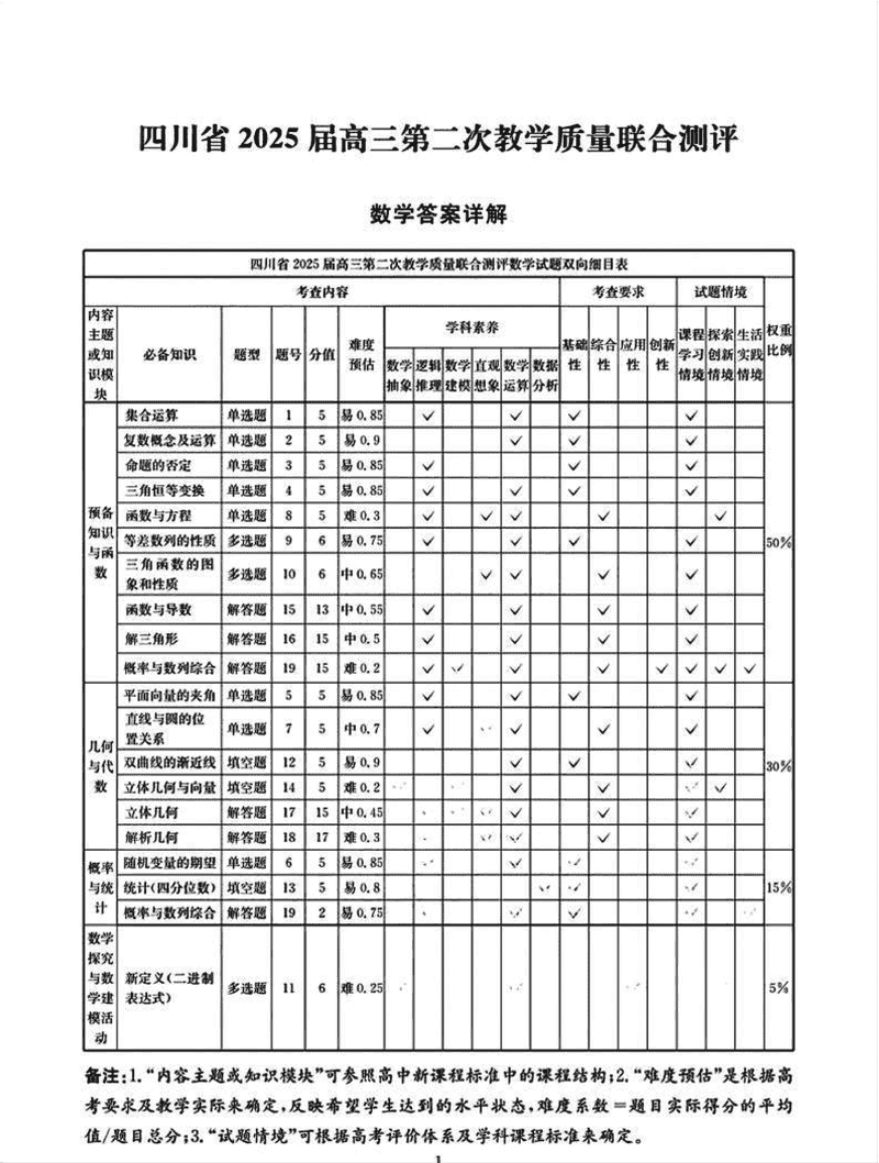 2025届四川高三第二次教学质量联合测评数学考试已于近日开考,为方便考生考后及时查看考试情况,查漏补缺、弥补不足,本文整理了试题答案解析相关信息!
