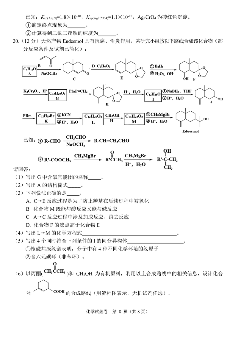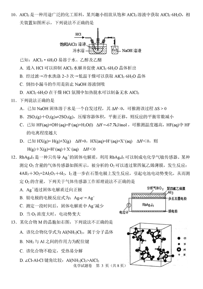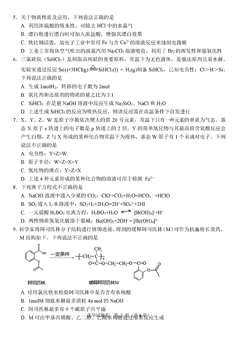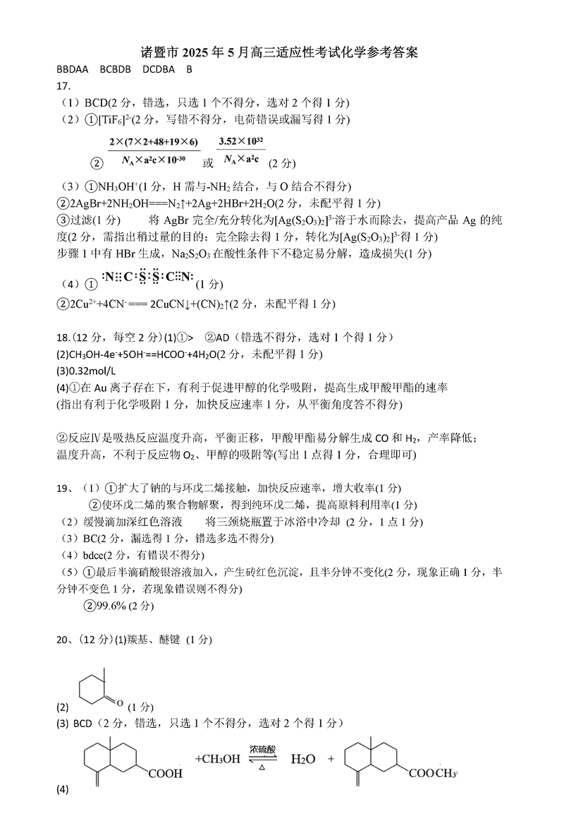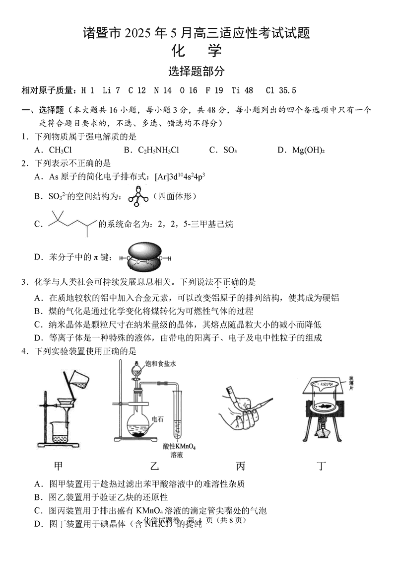 浙江诸暨2025年5月高三适应性考化学试题及答案 时间:2025-05-15 浙江 理综试题 浙江诸暨2025年5月高三适应性考化学考试已于近日开考,为方便考生考后及时查看考试情况,查漏补缺、弥补不足,本文整理了试题答案解析相关信息! 汇总:浙江诸暨2025年5月高三适应性考试试题及答案汇总 化学试题及答案解析