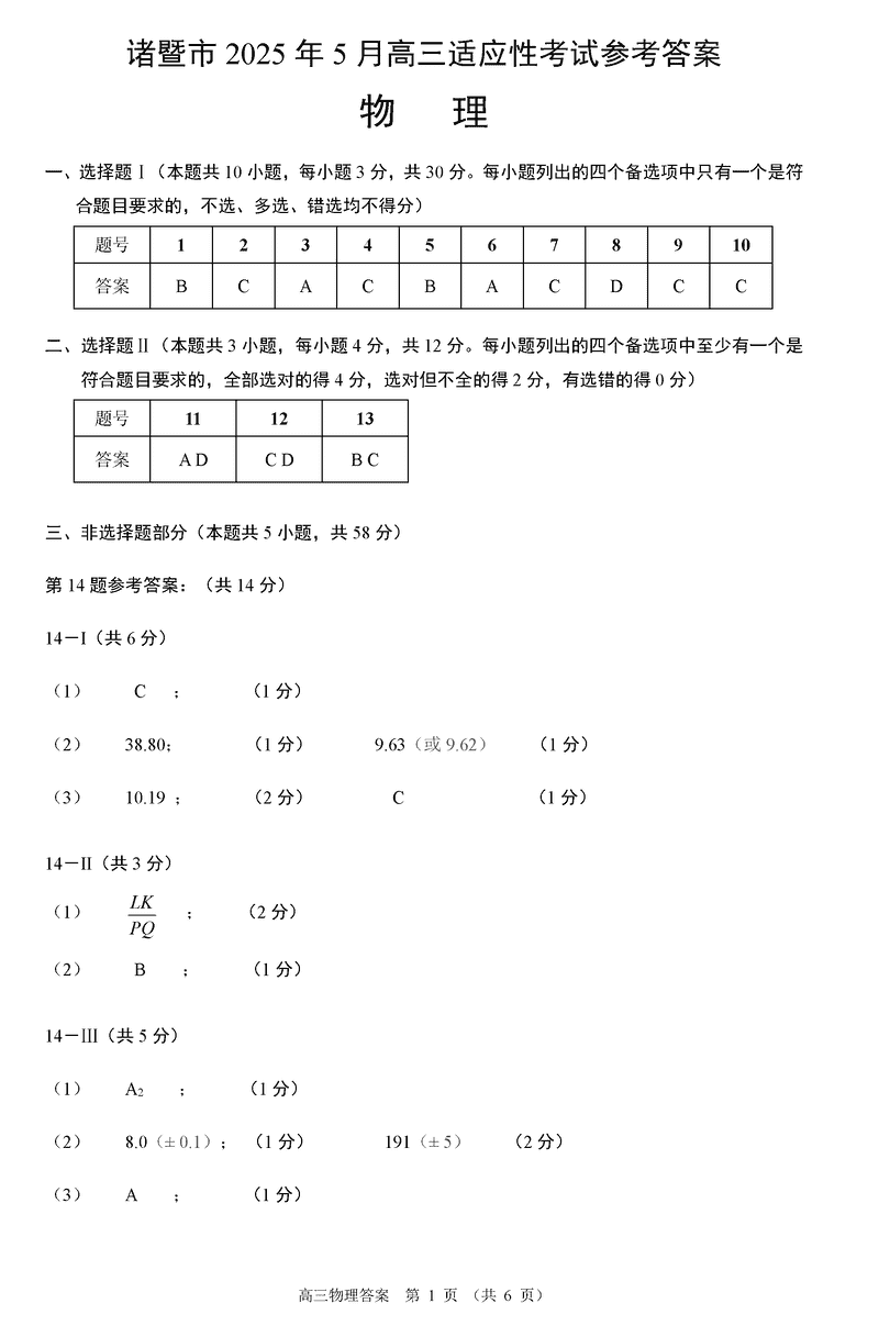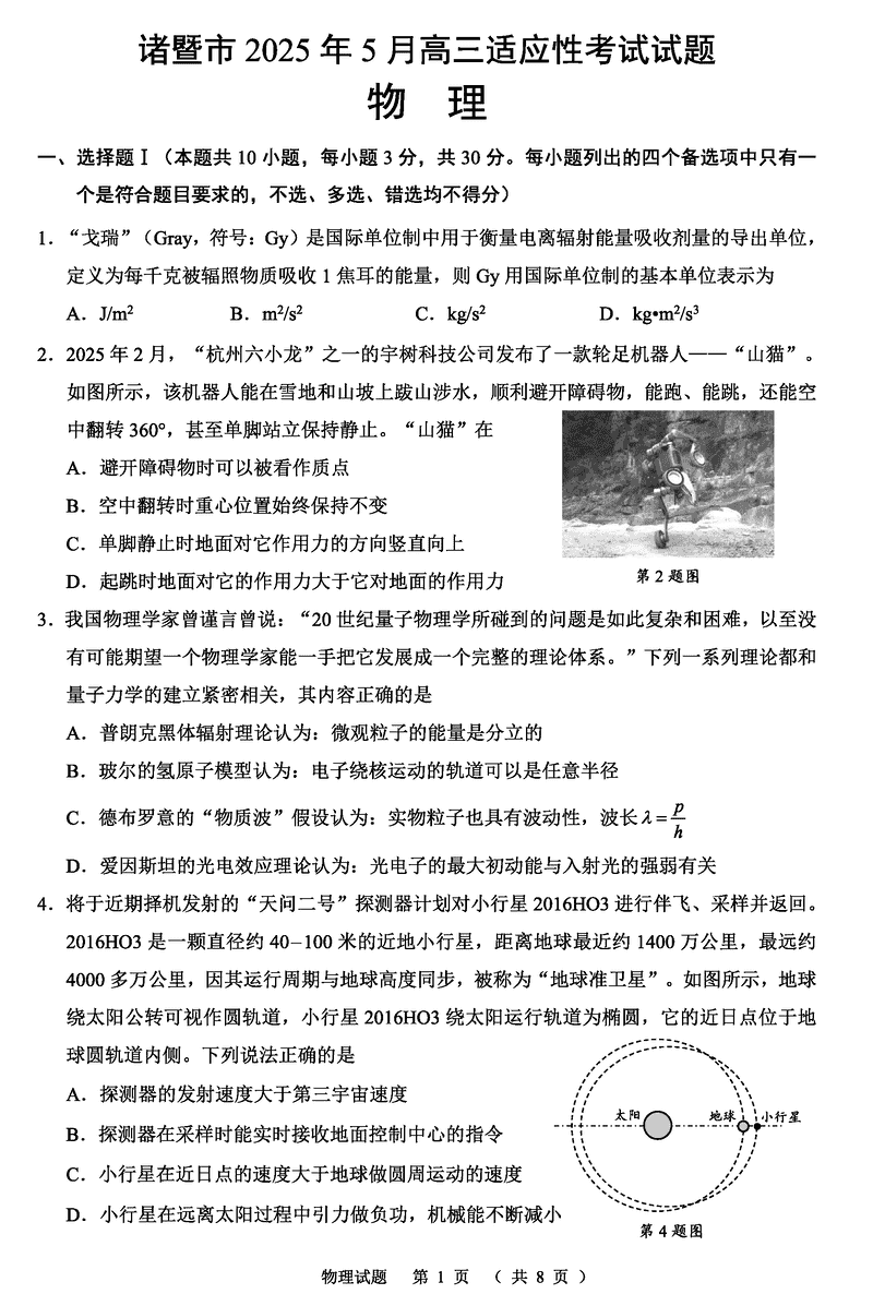 浙江诸暨2025年5月高三适应性考物理试题及答案 时间:2025-05-15 浙江 理综试题 浙江诸暨2025年5月高三适应性考物理考试已于近日开考,为方便考生考后及时查看考试情况,查漏补缺、弥补不足,本文整理了试题答案解析相关信息! 汇总:浙江诸暨2025年5月高三适应性考试试题及答案汇总 物理试题及答案解析