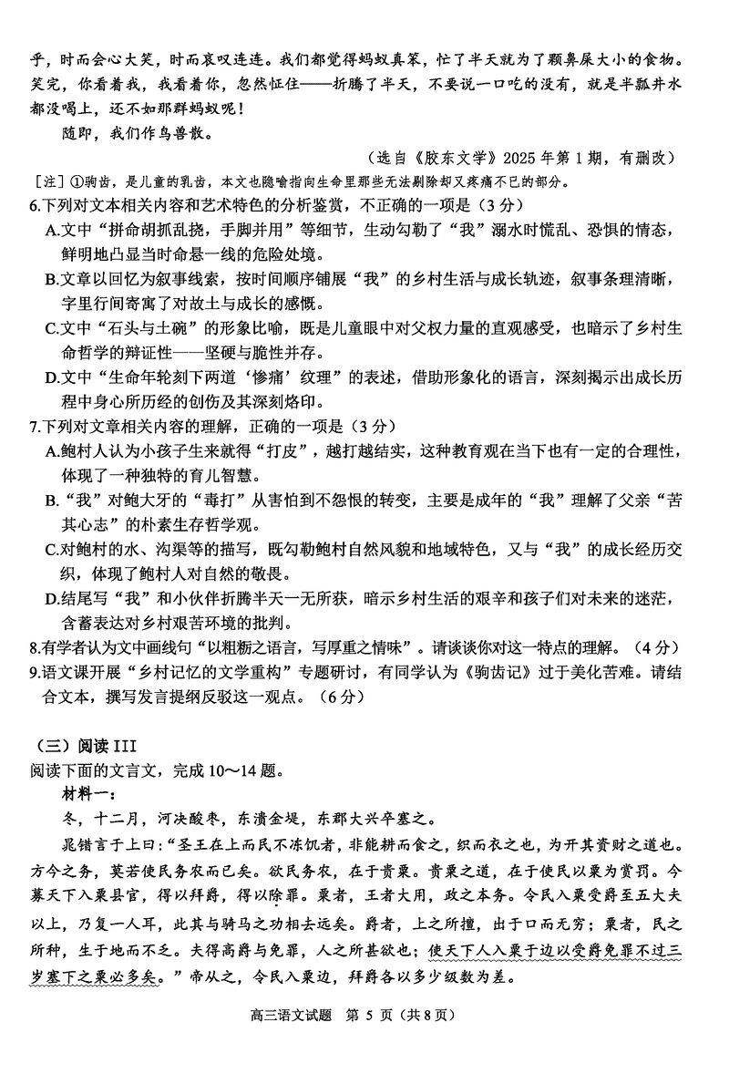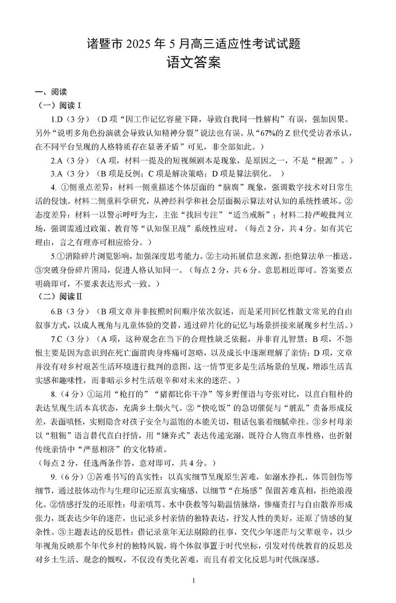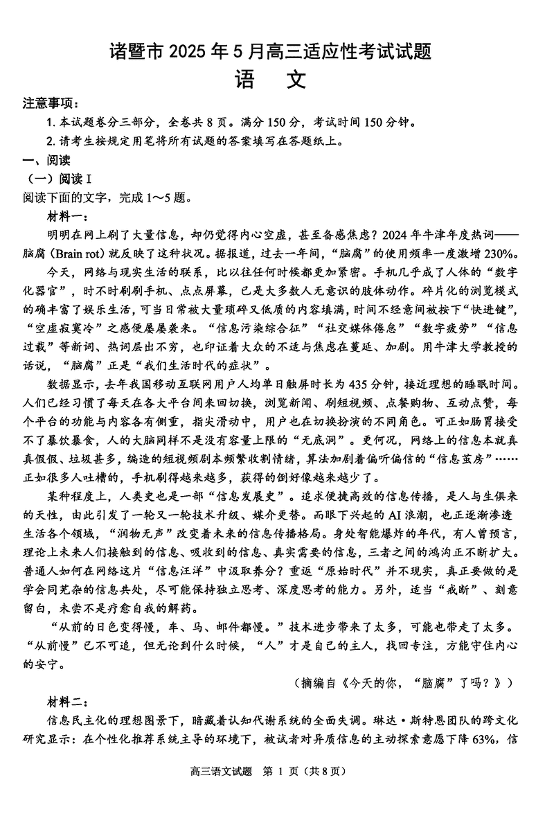 浙江诸暨2025年5月高三适应性考语文试题及答案 时间:2025-05-15 浙江 语文试题 浙江诸暨2025年5月高三适应性考语文考试已于近日开考,为方便考生考后及时查看考试情况,查漏补缺、弥补不足,本文整理了试题答案解析相关信息! 汇总:浙江诸暨2025年5月高三适应性考试试题及答案汇总 语文试题及答案解析
