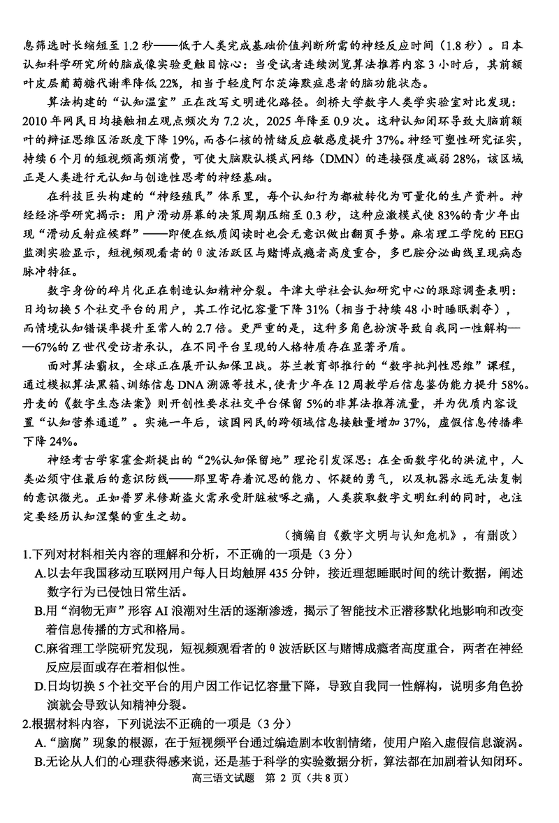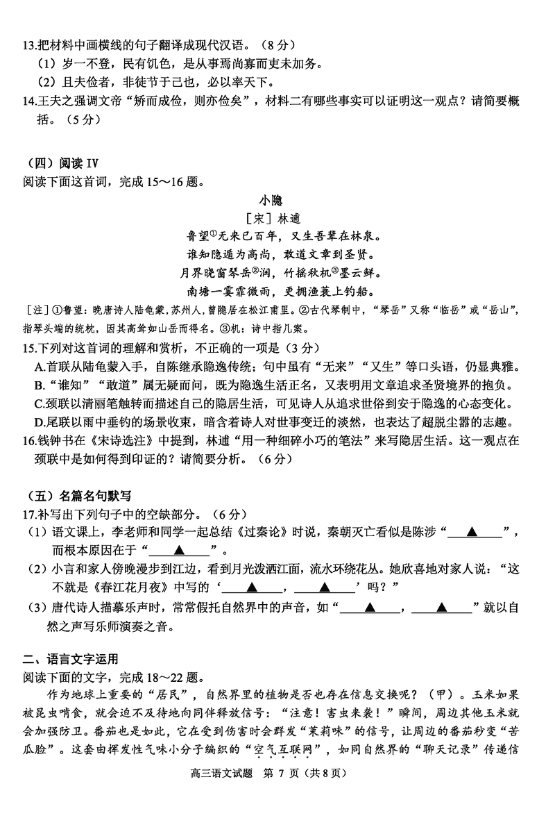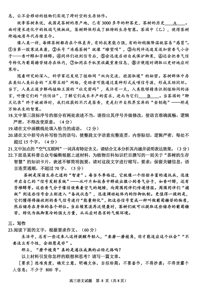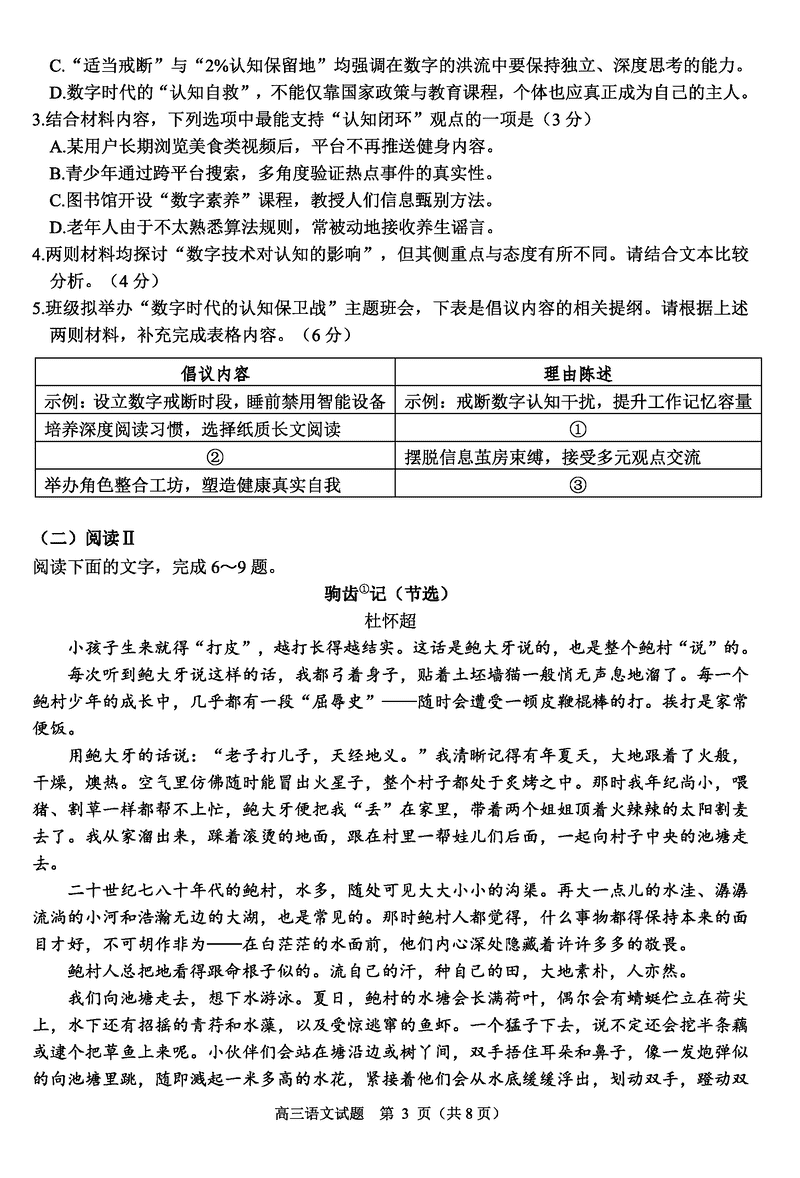 浙江诸暨2025年5月高三适应性考语文试题及答案 时间:2025-05-15 浙江 语文试题 浙江诸暨2025年5月高三适应性考语文考试已于近日开考,为方便考生考后及时查看考试情况,查漏补缺、弥补不足,本文整理了试题答案解析相关信息! 汇总:浙江诸暨2025年5月高三适应性考试试题及答案汇总 语文试题及答案解析