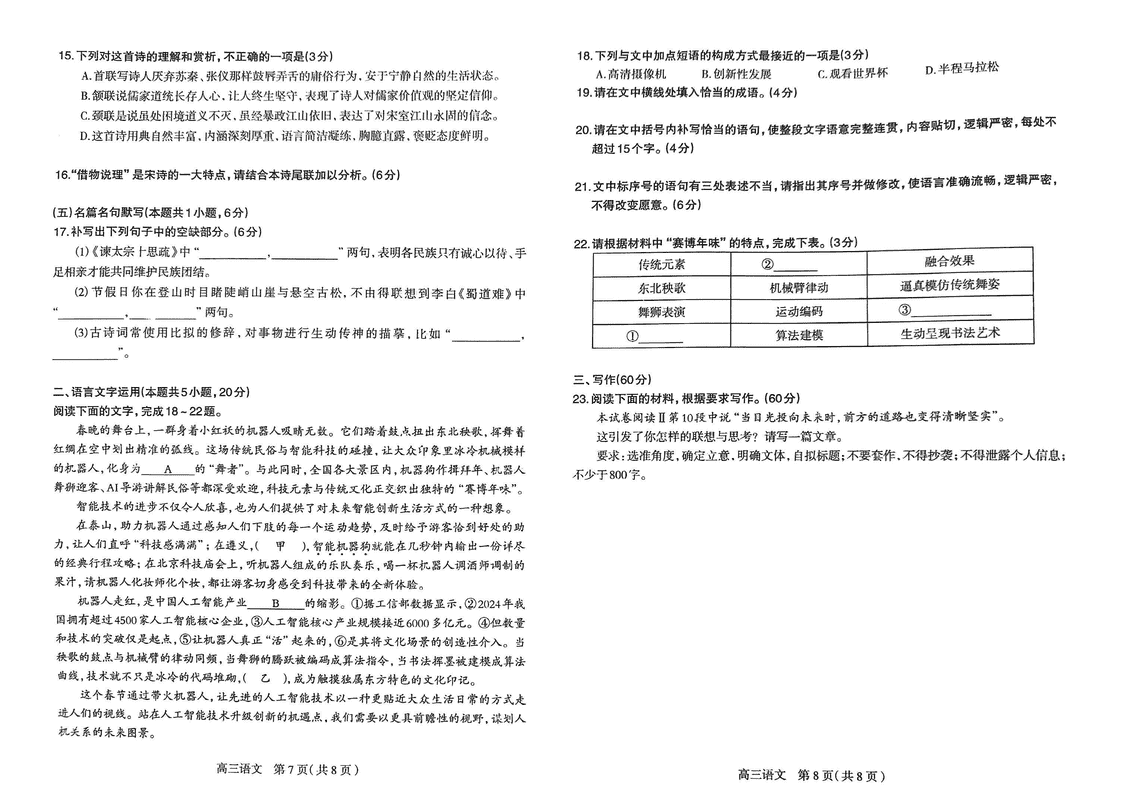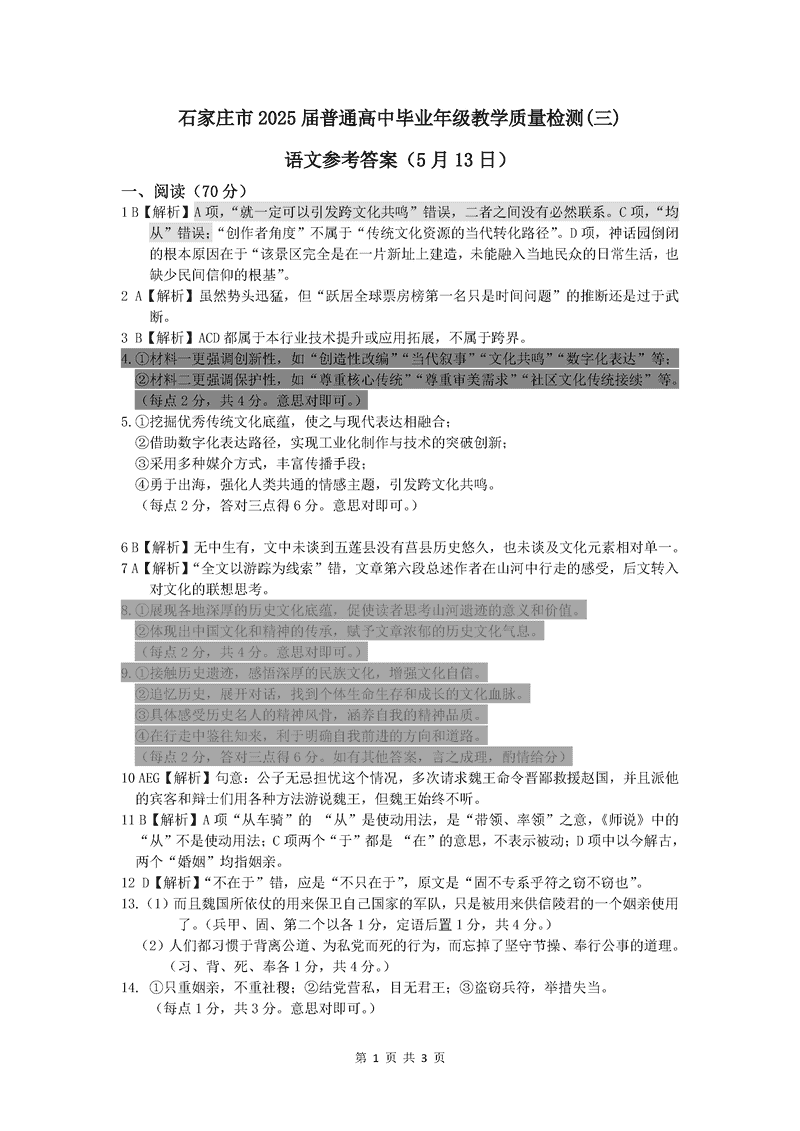 石家庄三模2025届高三教学质检三语文试题及答案 时间:2025-05-15 河北 语文试题 石家庄三模2025届高三教学质量检测三语文考试已于近日开考,为方便考生考后及时查看考试情况,查漏补缺、弥补不足,本文整理了试题答案解析相关信息! 汇总:石家庄三模2025届高三教学质量检测三试题及答案汇总 语文试题及答案解析