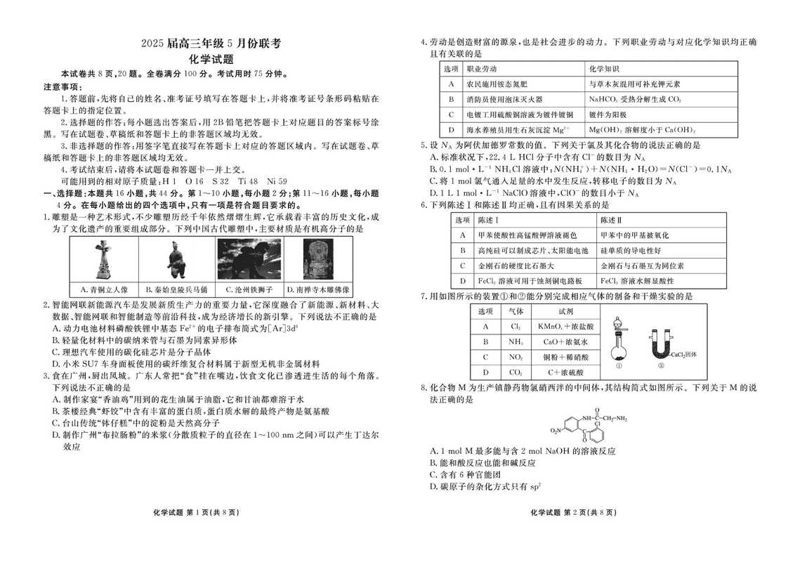 广东省衡水金卷2025届高三年级5月联考化学考试已于近日开考,为方便考生考后及时查看考试情况,查漏补缺、弥补不足,本文整理了试题答案解析相关信息!